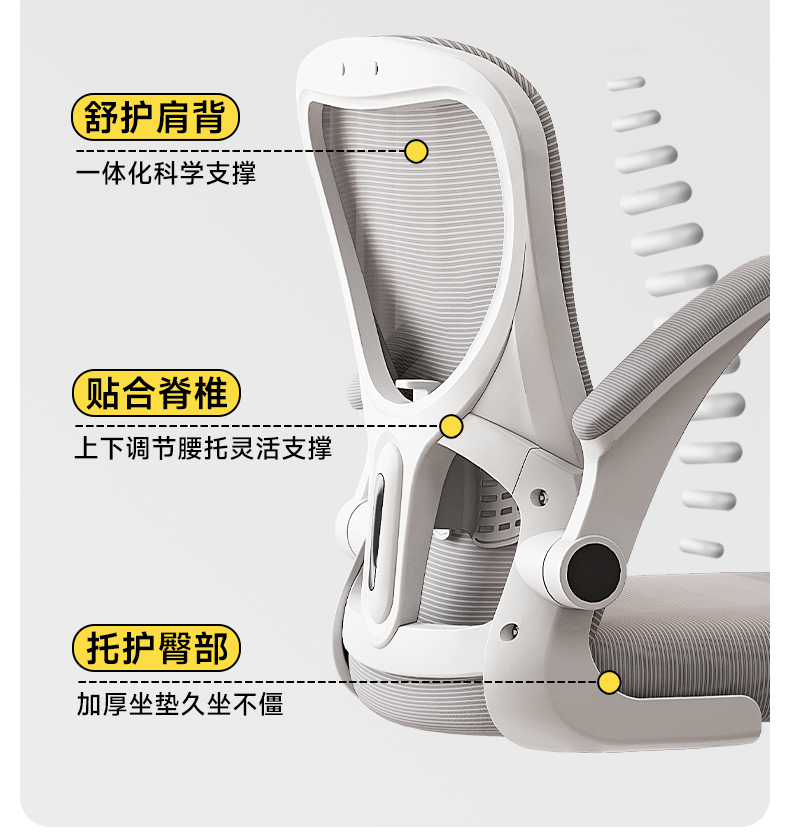 • [숏모델 - 145-165cm에 적합] 척추요추 지지대 리프트| 흰색 회색| 머리받침 없음| 스폰지 쿠션 탄소강 발