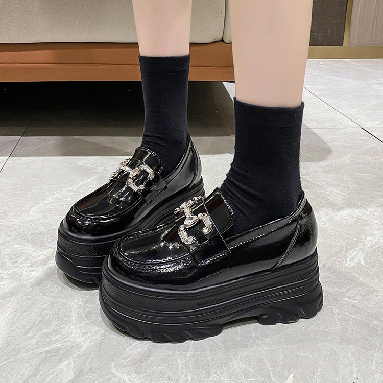 여성용 브리티시 스타일 작은 가죽 신발, 라인스톤 버클, 2025 봄 가을 신상 패션 플랫폼 두꺼운 밑창 싱글 슈즈, 키가 큰 로퍼스토어 가기