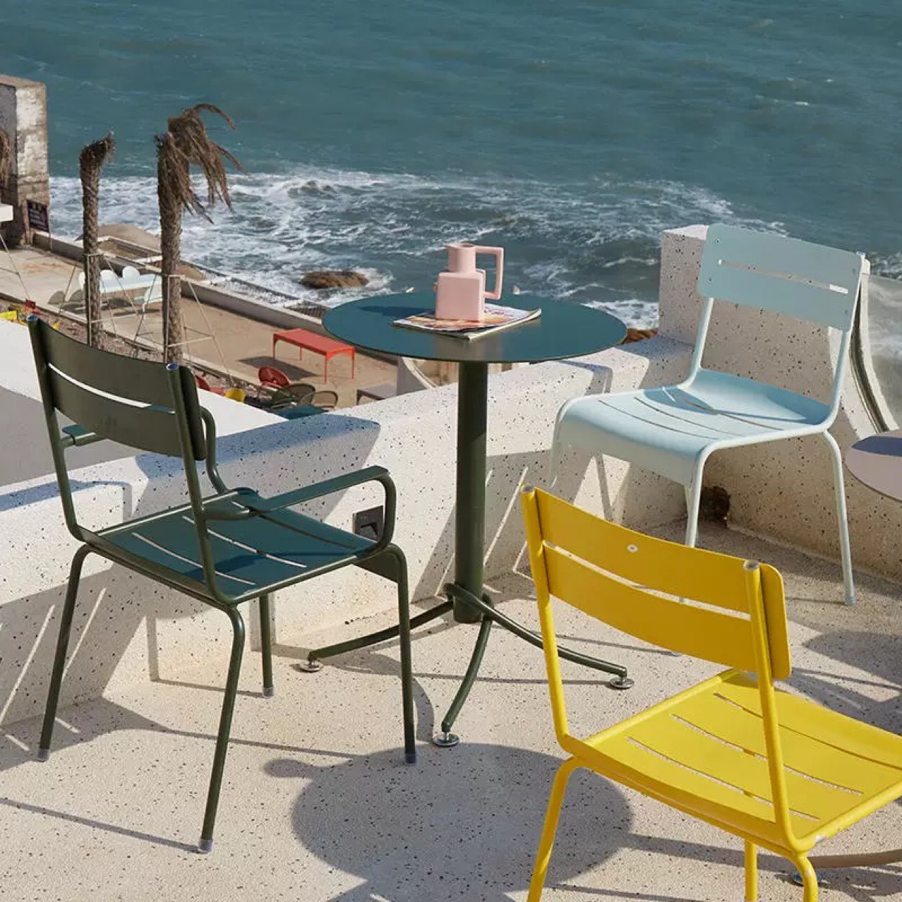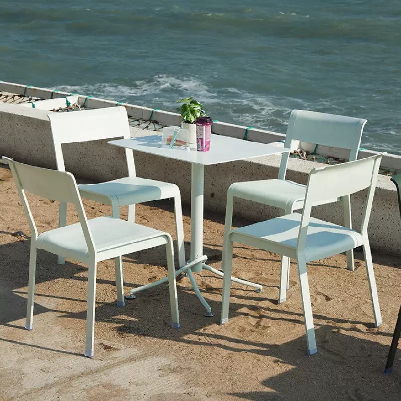 간단한 야외 테이블과 의자 조합 해변 공원 야외 알루미늄 합금 작은 원형 테이블 카페 야외 테이블 및 의자 바 카운터스토어 가기