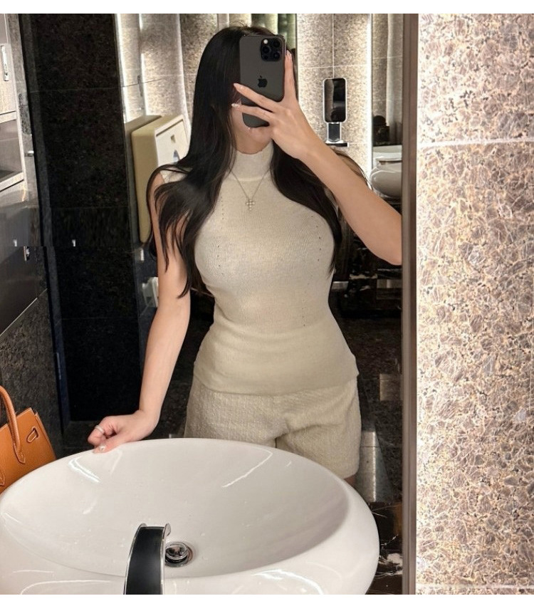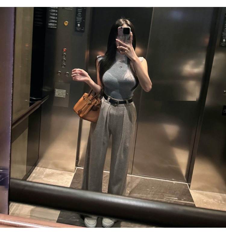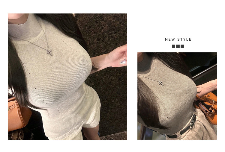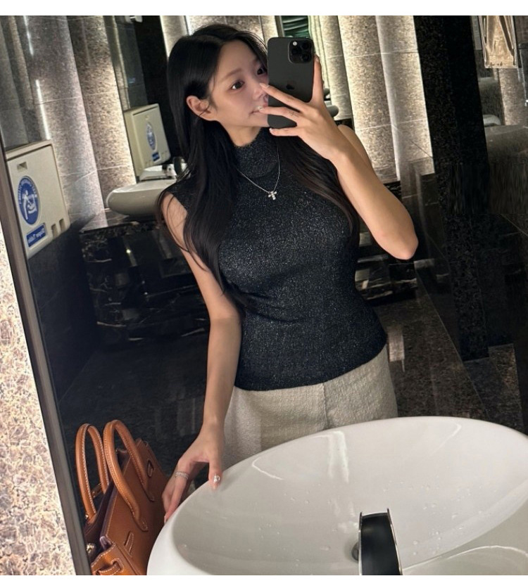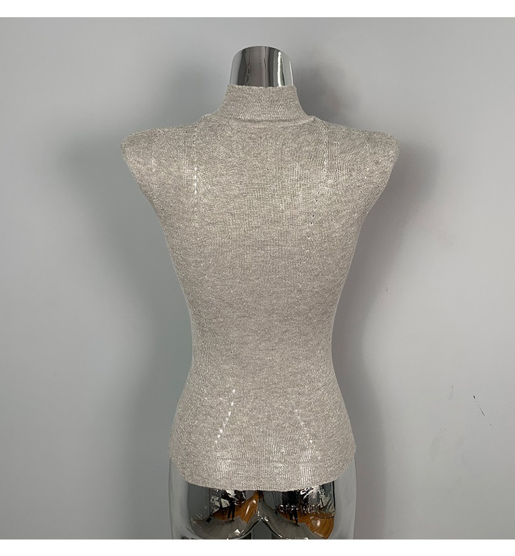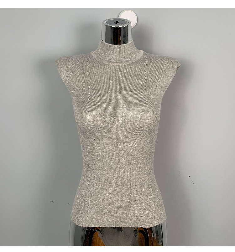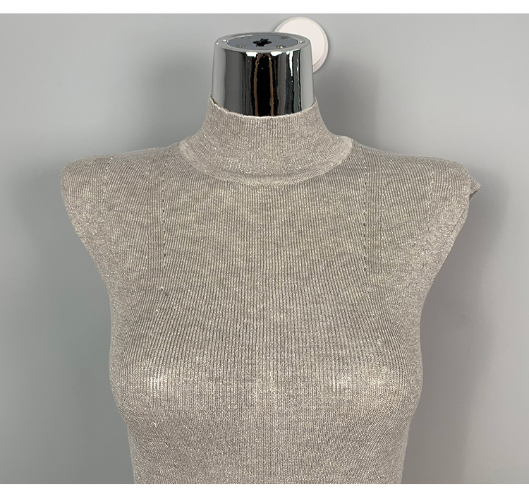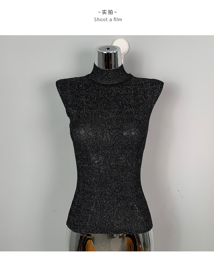 한국 동대문 스타일 슬림하고 다재다능한 섹시한 핫걸 바디 쉐이핑 하프 터틀넥 민소매 스웨터 탑 여성 의류스토어 가기