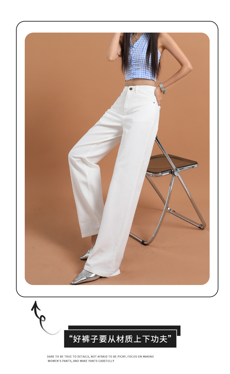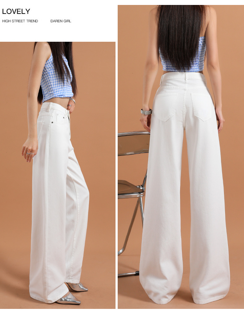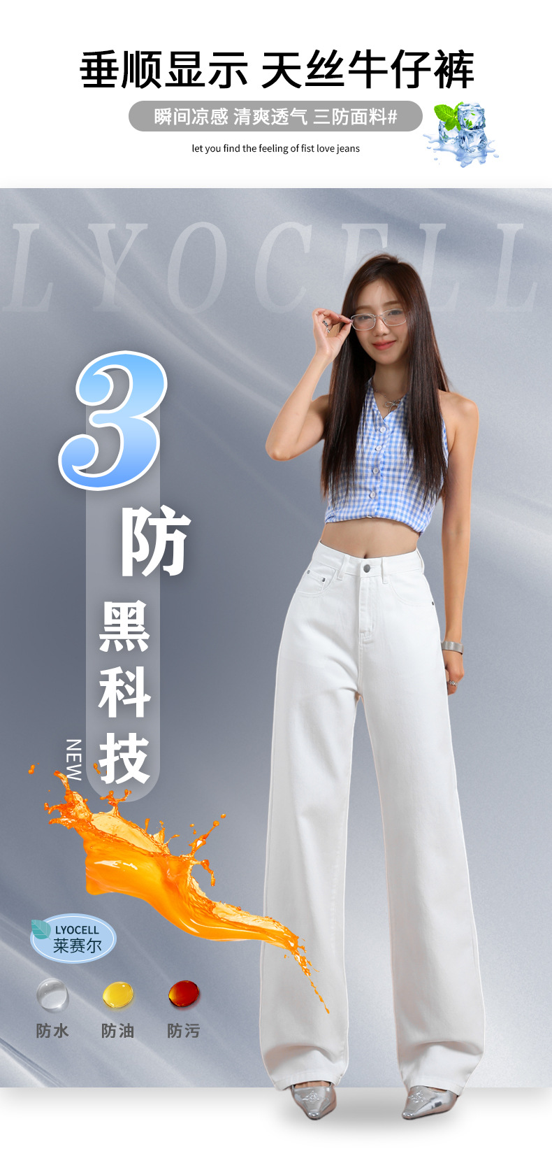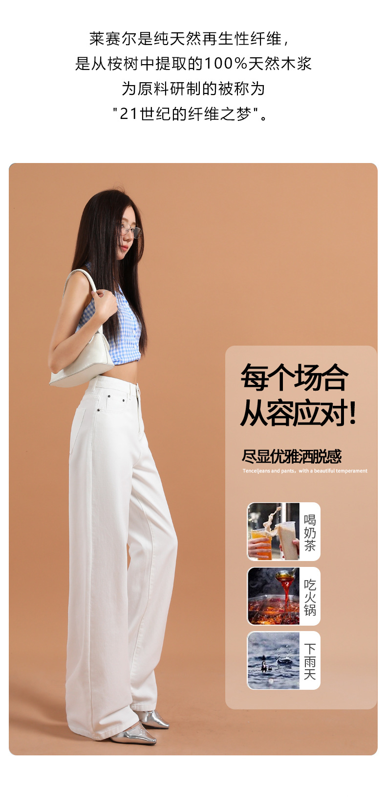 흰색 3 방지 텐셀 스트레이트 레그 와이드 레그 청바지 여성의 2025 년 여름 높은 허리 슬리밍 루즈 딥 팬츠