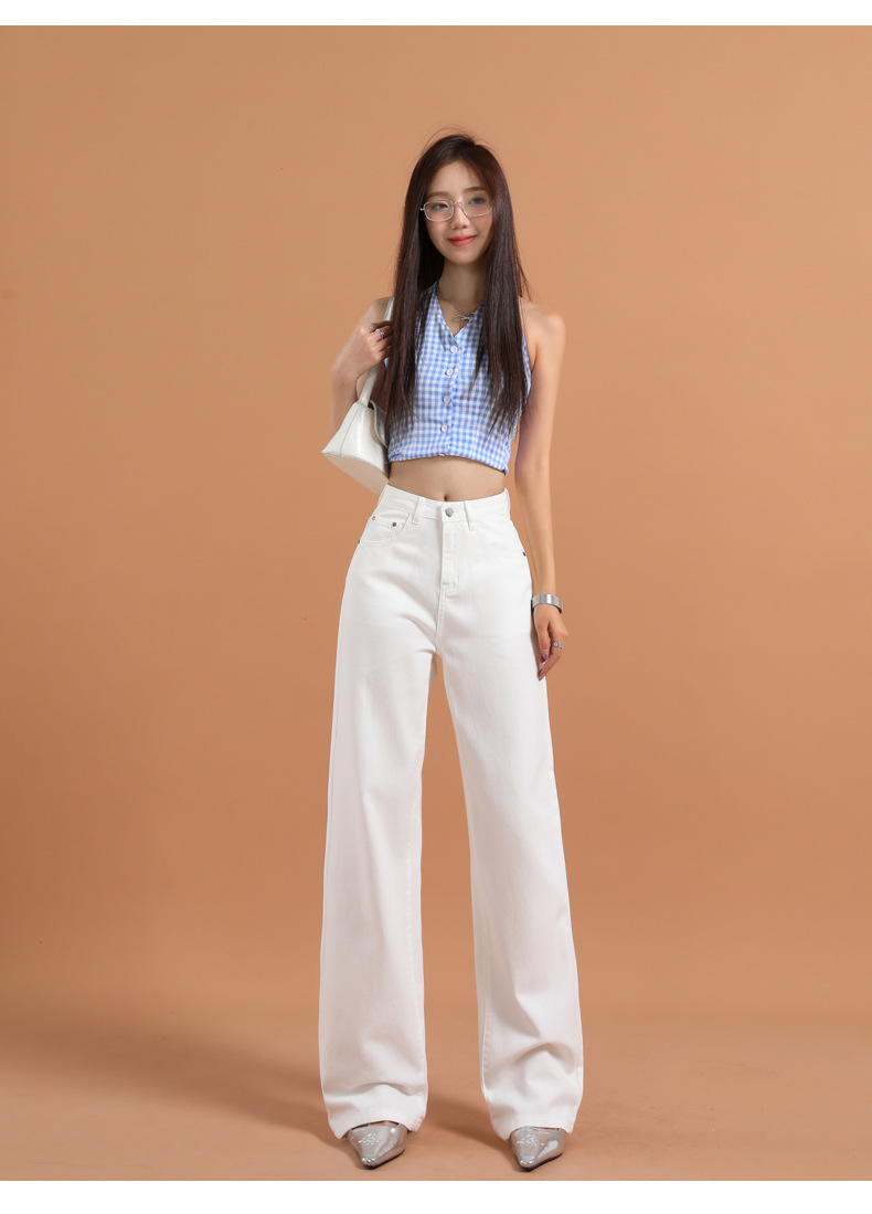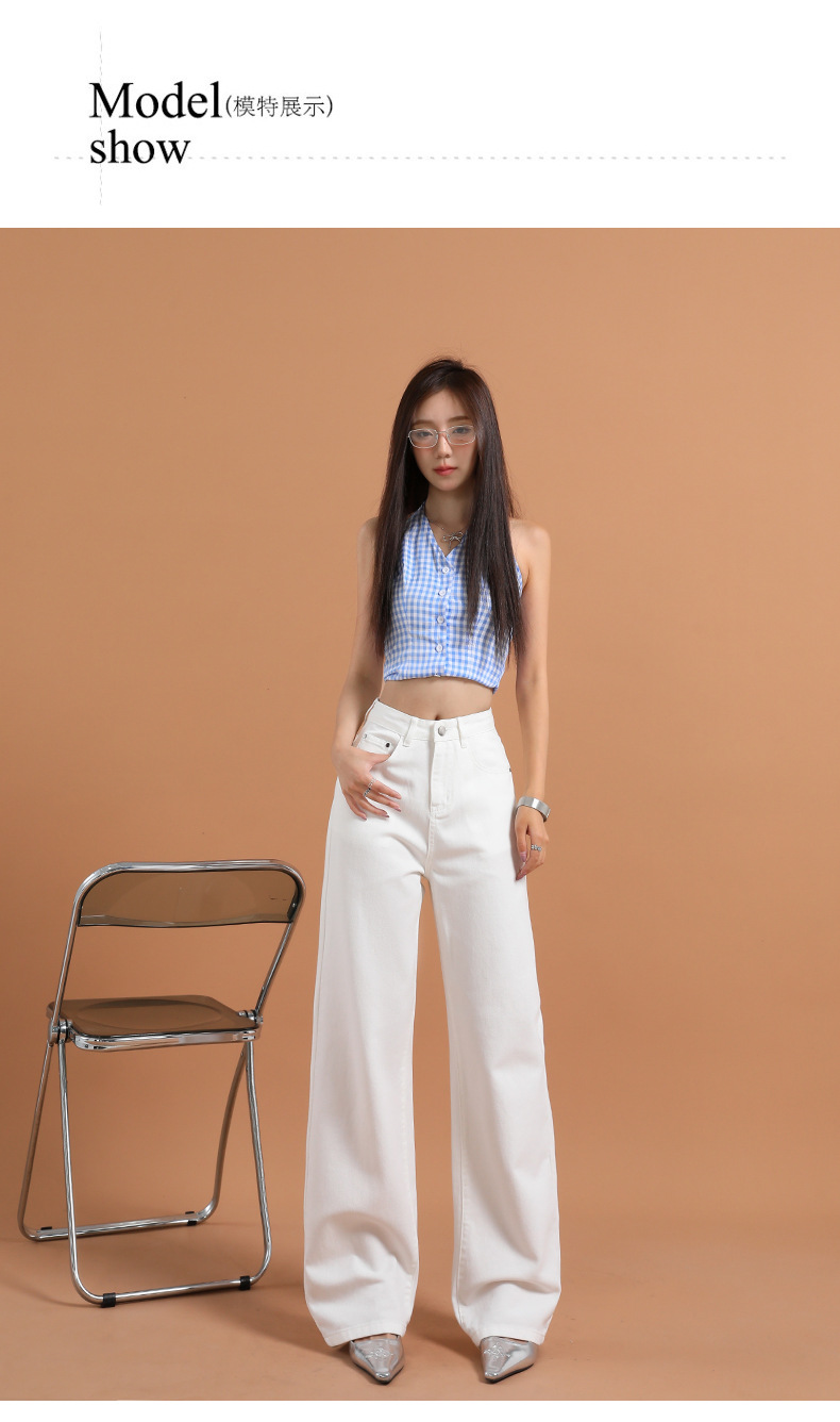 흰색 3 방지 텐셀 스트레이트 레그 와이드 레그 청바지 여성의 2025 년 여름 높은 허리 슬리밍 루즈 딥 팬츠스토어 가기