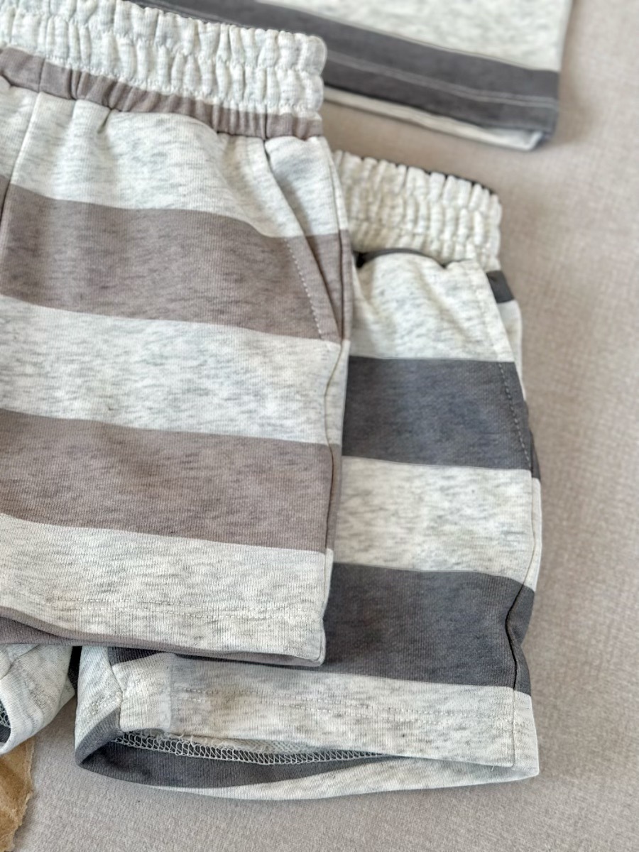 Ins 대외 무역 크로스 보더 소년 여름 어린이 정장 남성과 여성 베이비 스트라이프 반팔 다목적 티셔츠 반바지 투피스 세트스토어 가기