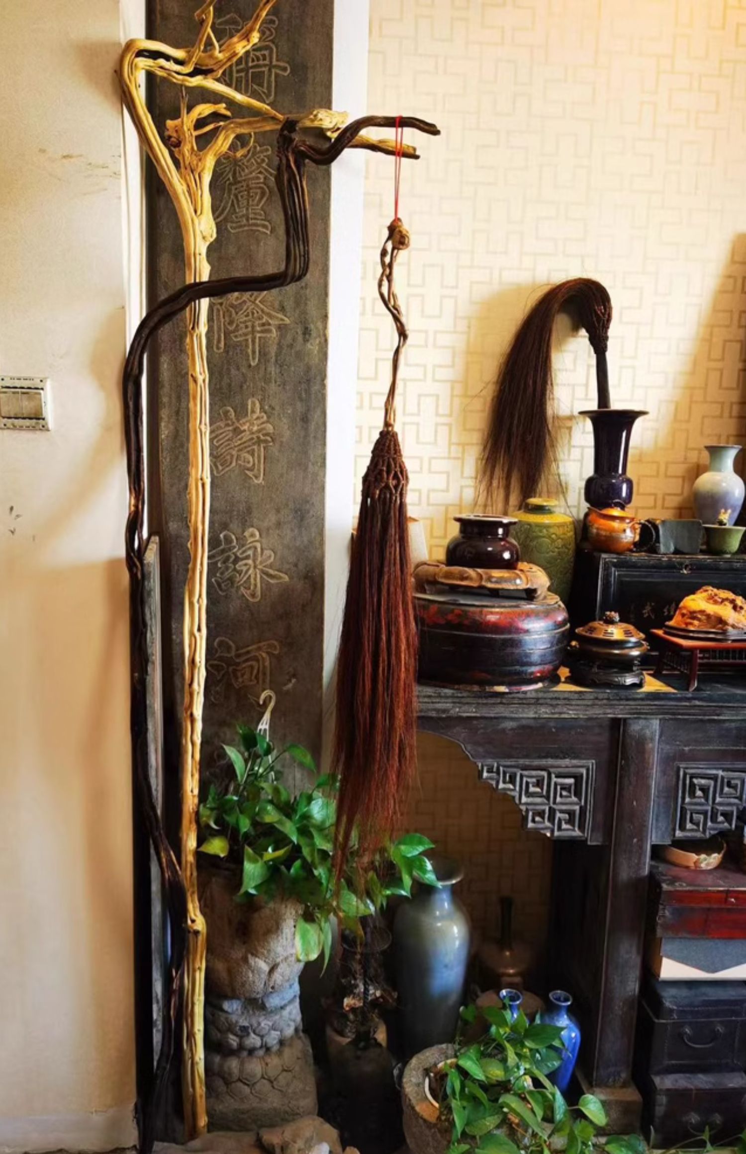 Xianciqi 나무 지팡이, 문인 지팡이, 천연 등나무 지팡이, 야외 등산 지팡이, 코스프레 하이킹 지팡이, 마법 지팡이