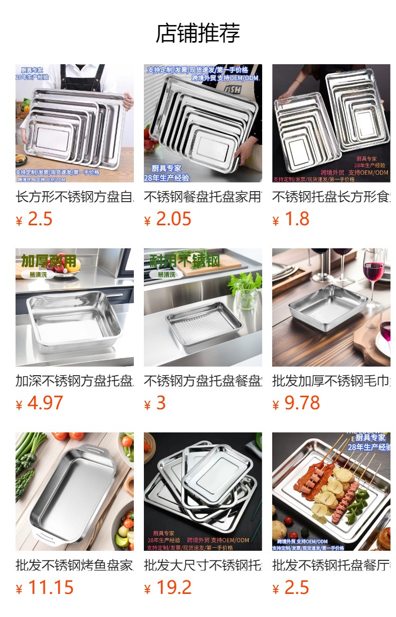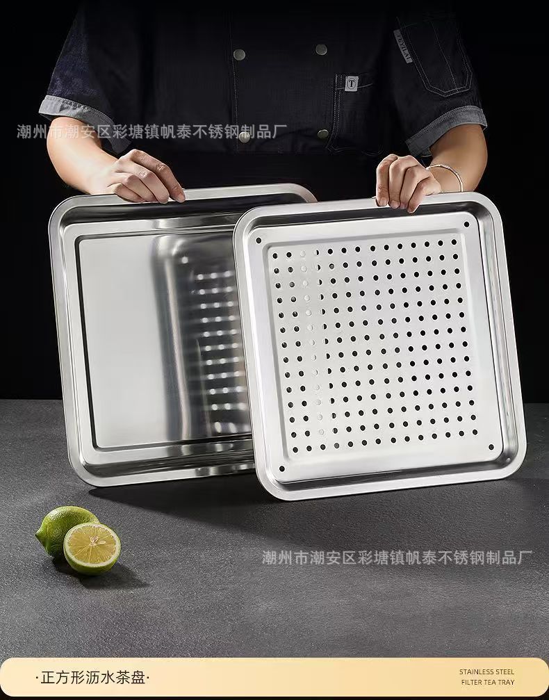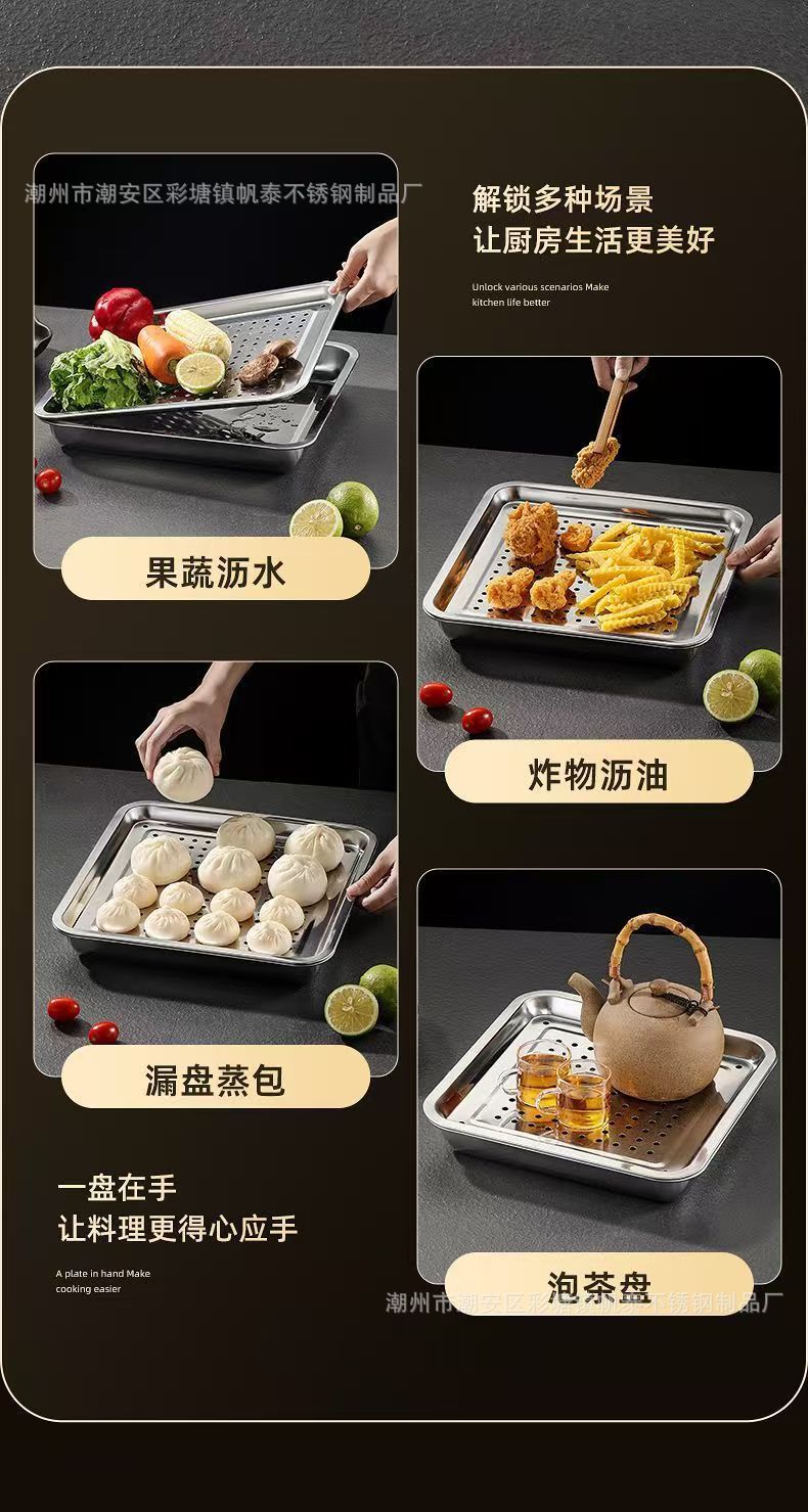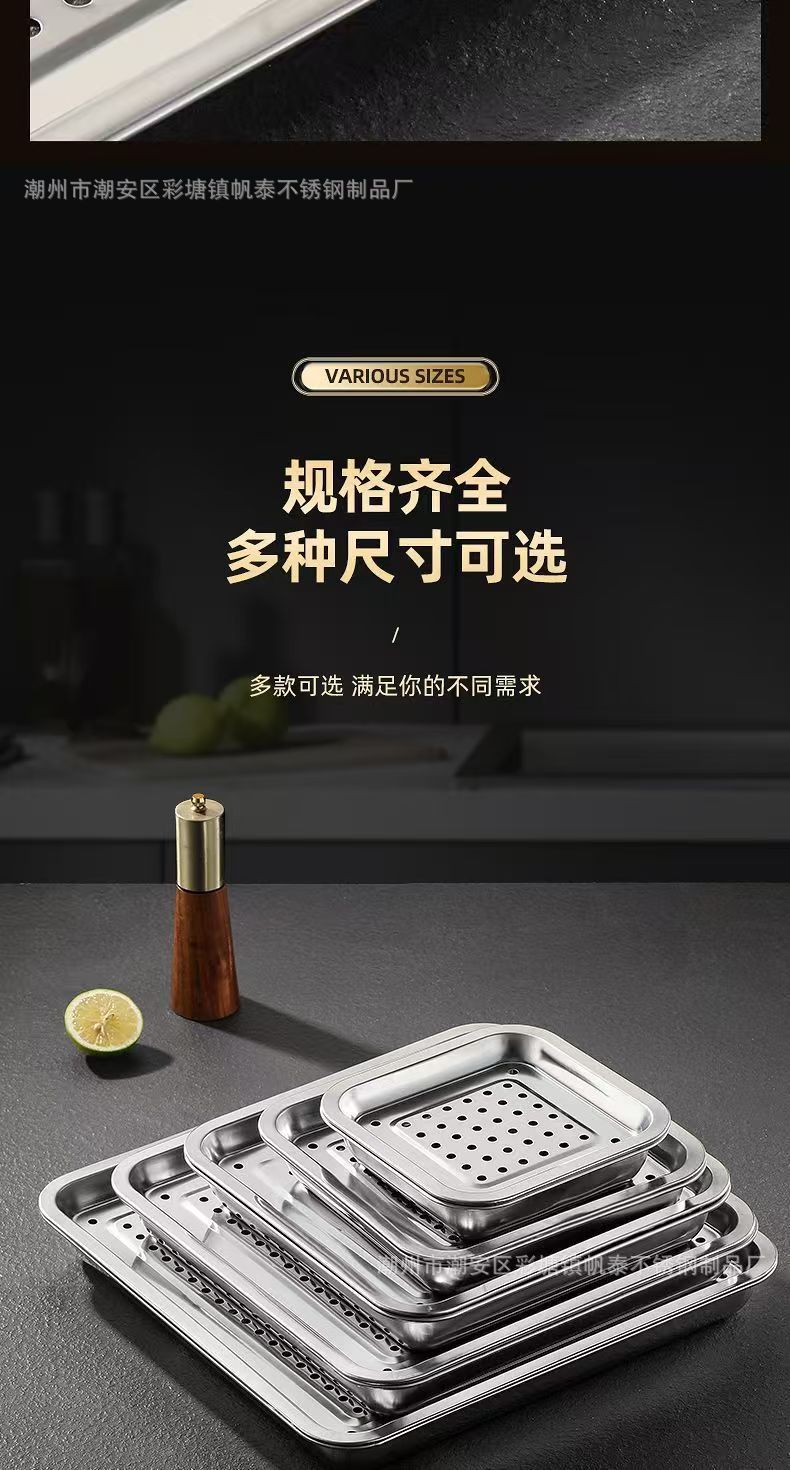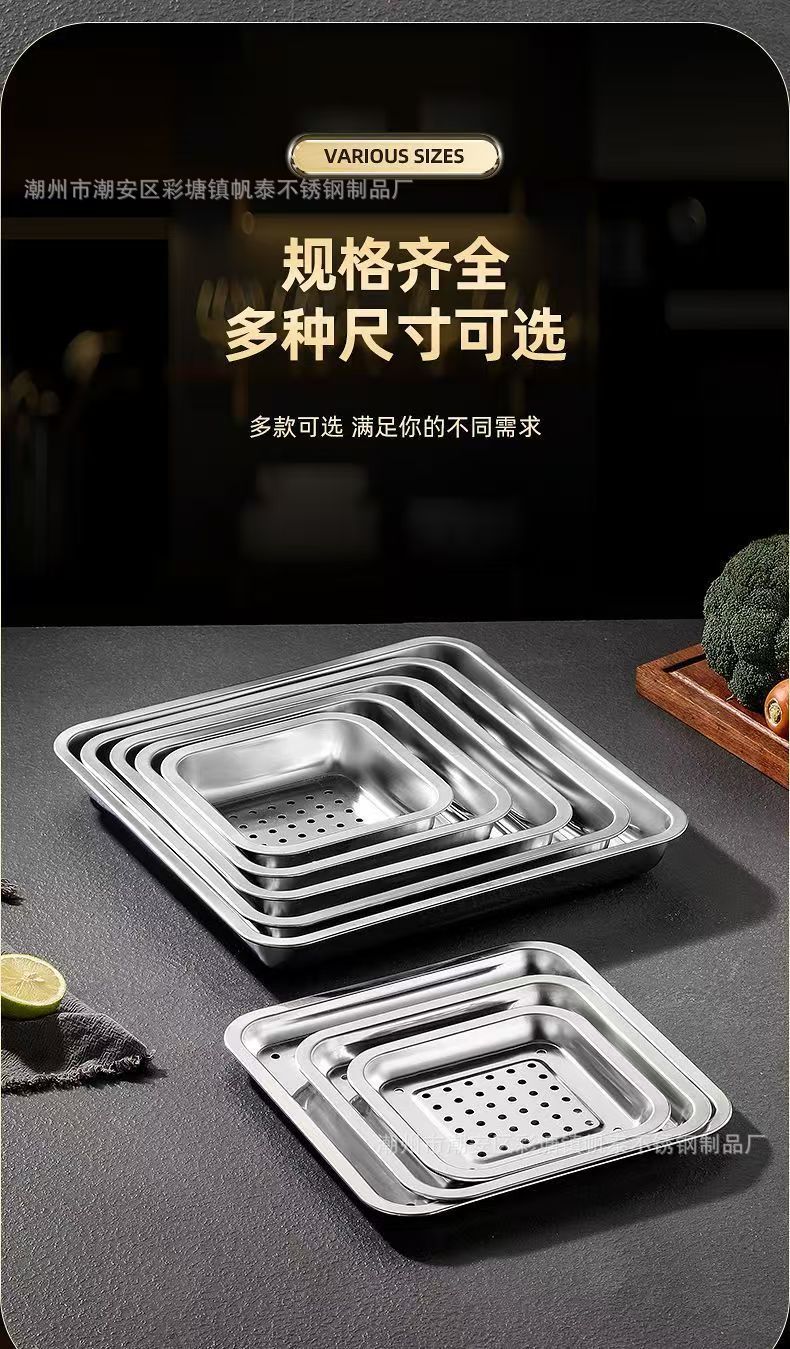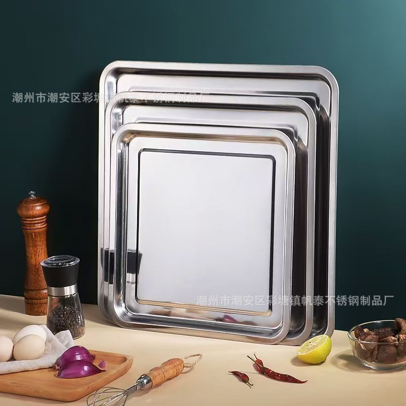 맞춤형 정사각형 스테인리스 접시, 업소용 식판, 가정용 트레이, 두껍고 깊은 베이킹 트레이, 접시, 요리 접시, 해외 판매스토어 가기