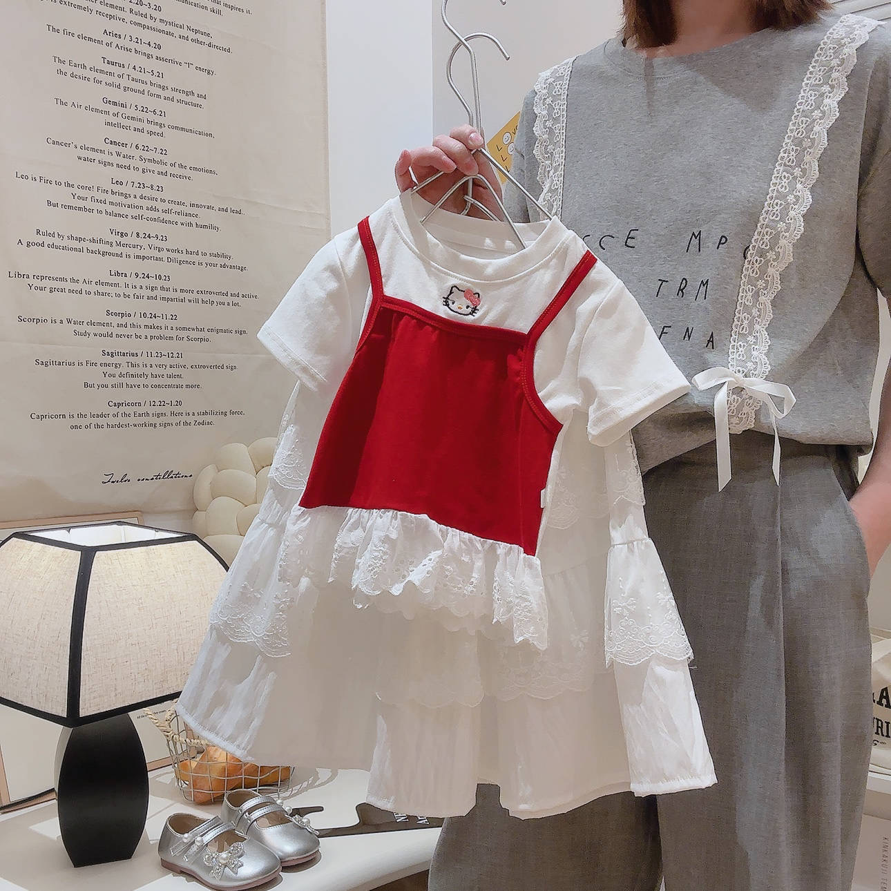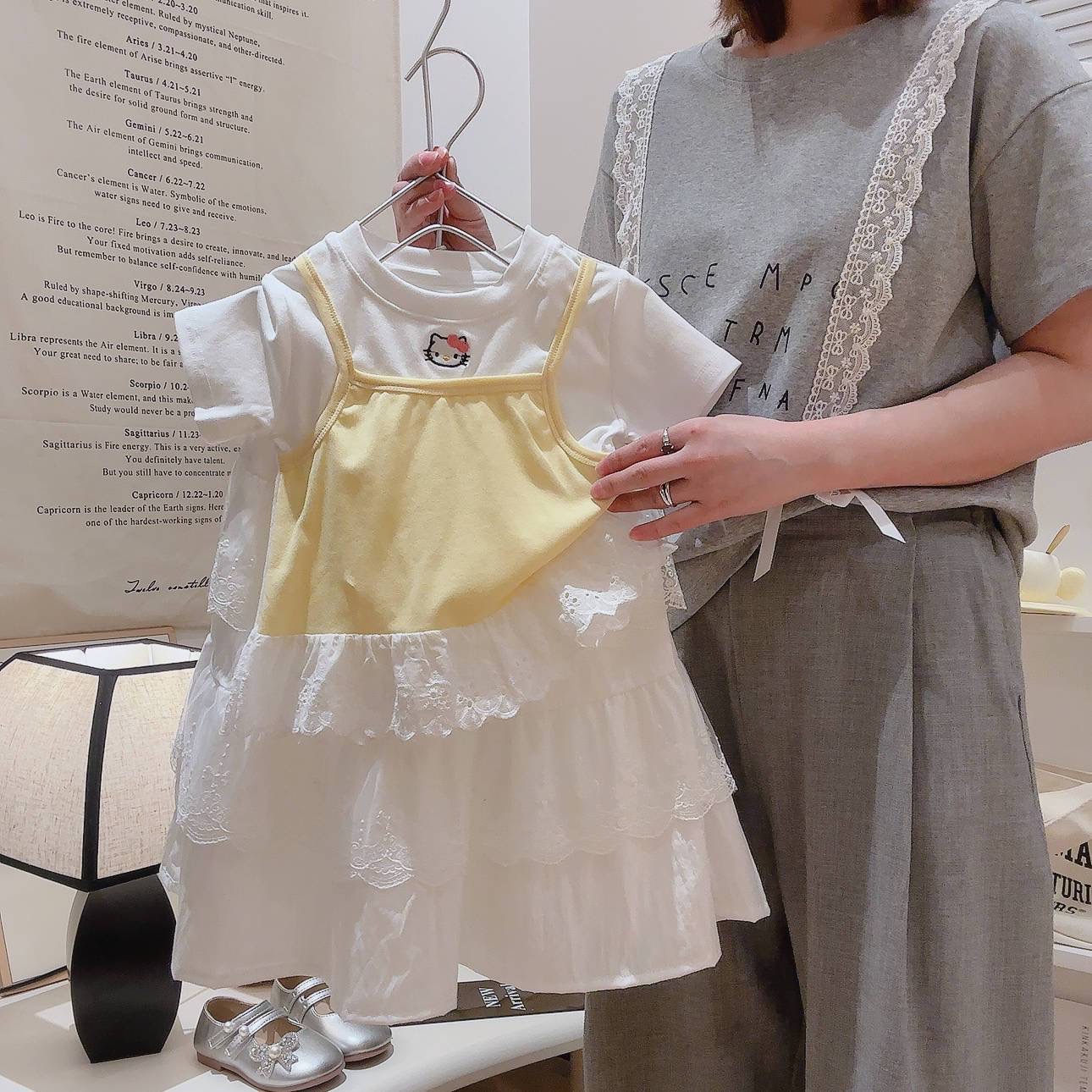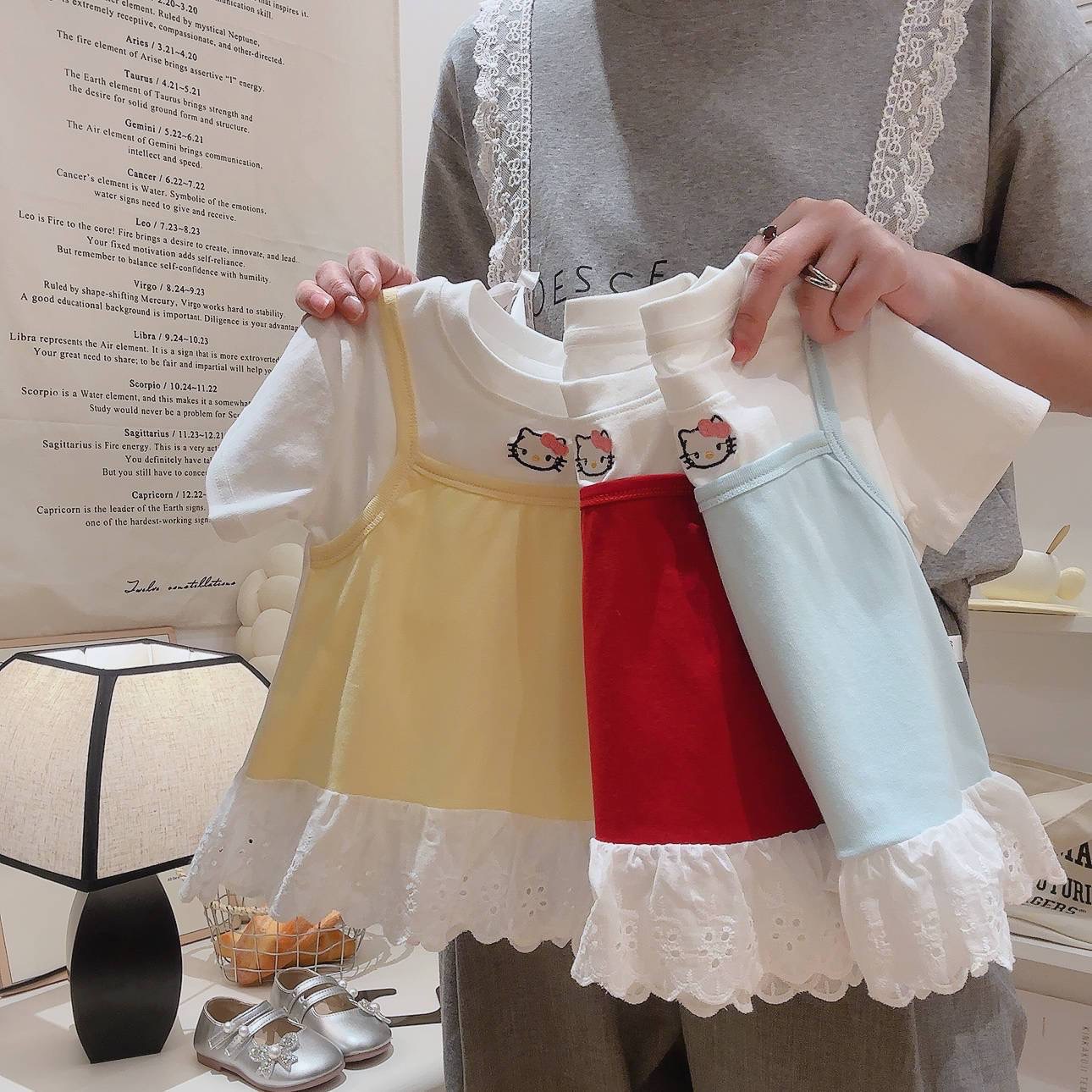 2025 여름 새 소녀 달콤한 가짜 투피스 자수 반팔 티셔츠 폭발성 코튼 탑스토어 가기