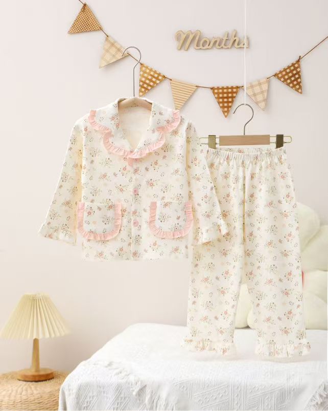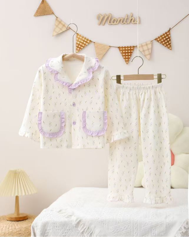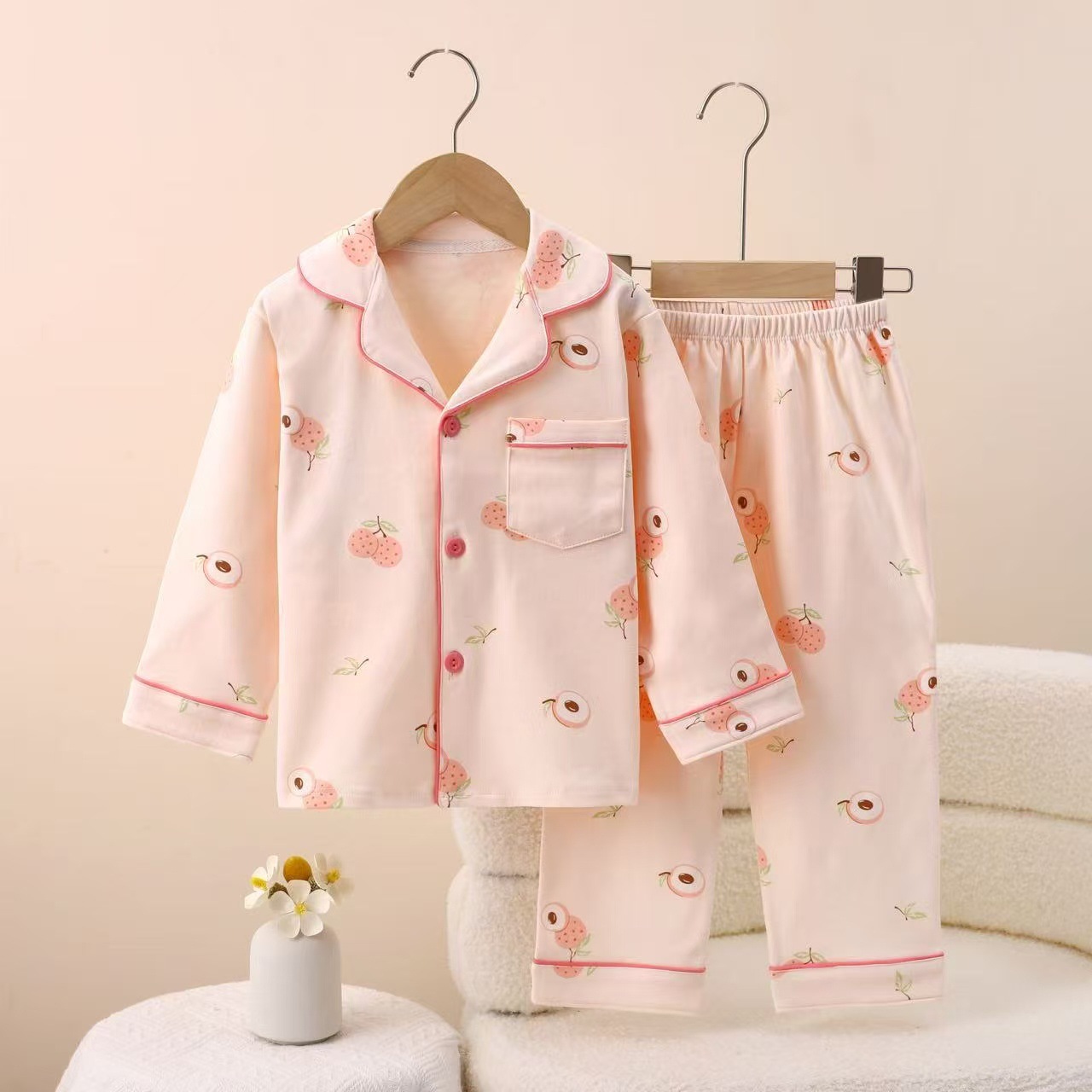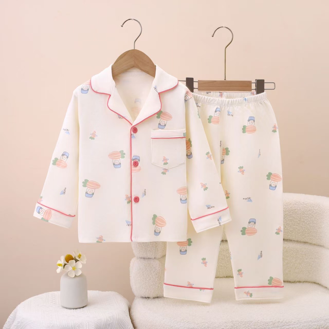 새로운 어린이 잠옷 봄과 가을 면화 소녀 긴 소매 바지 홈 옷 큰 아이 소년 소녀 만화 세트