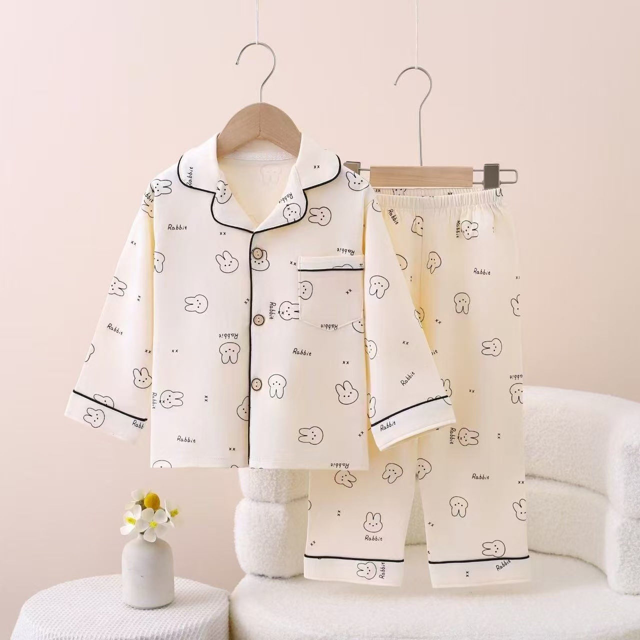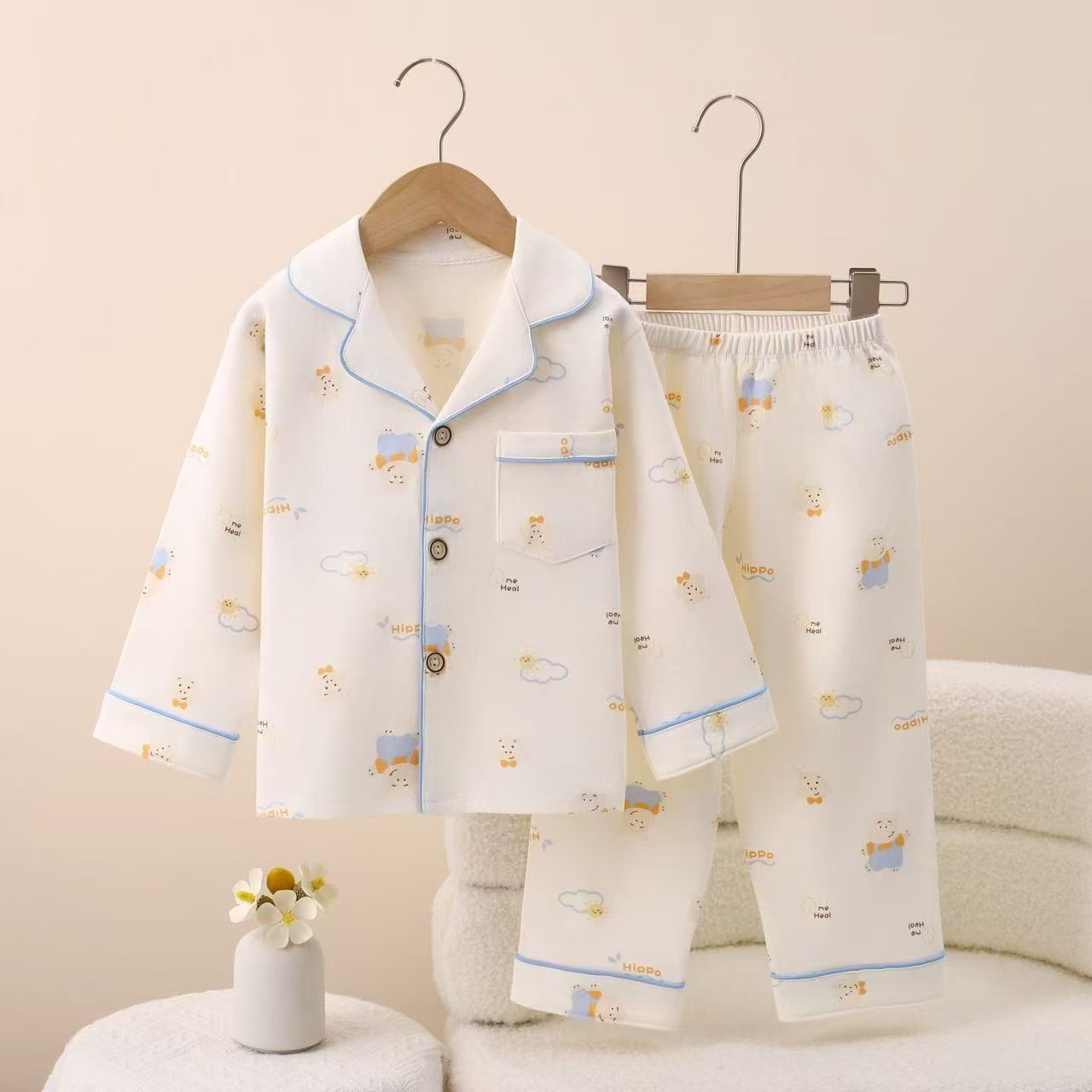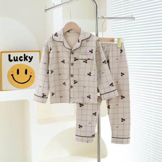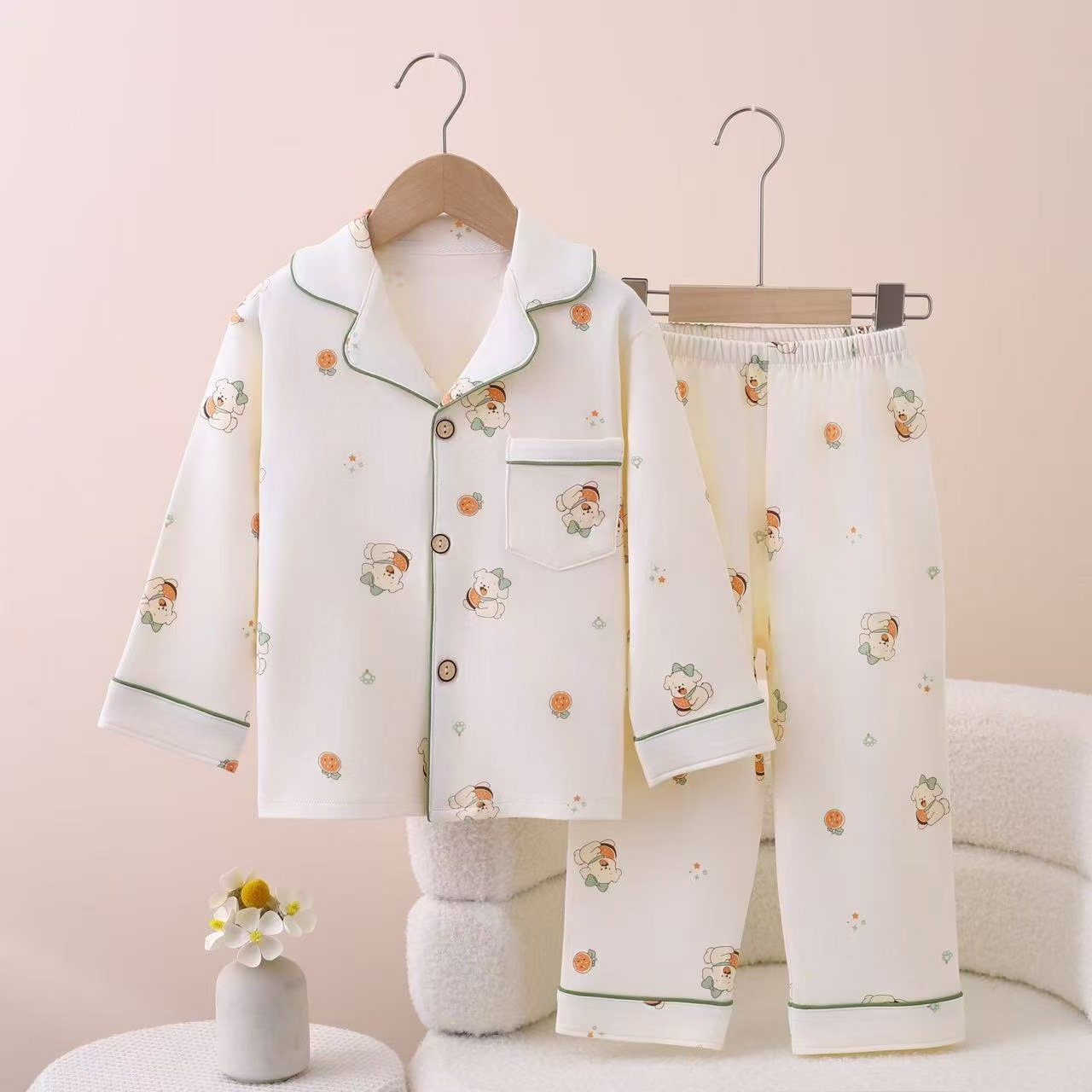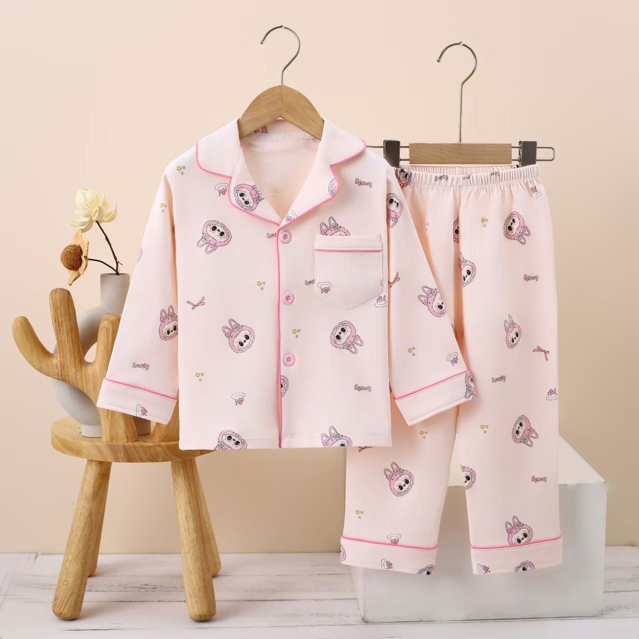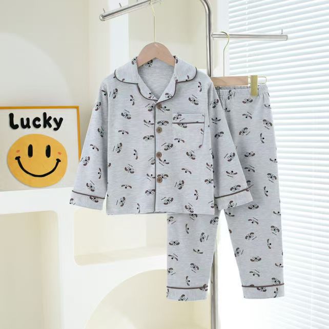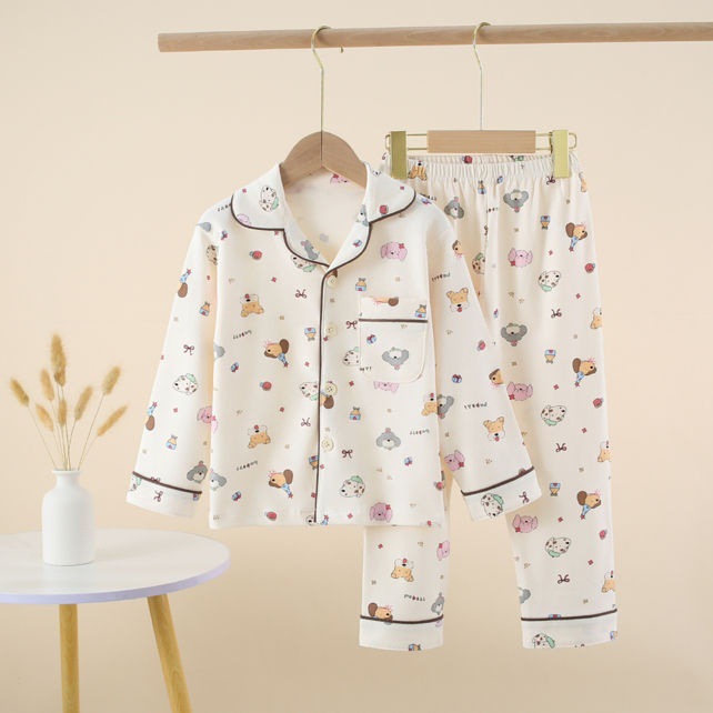 새로운 어린이 잠옷 봄과 가을 면화 소녀 긴 소매 바지 홈 옷 큰 아이 소년 소녀 만화 세트스토어 가기