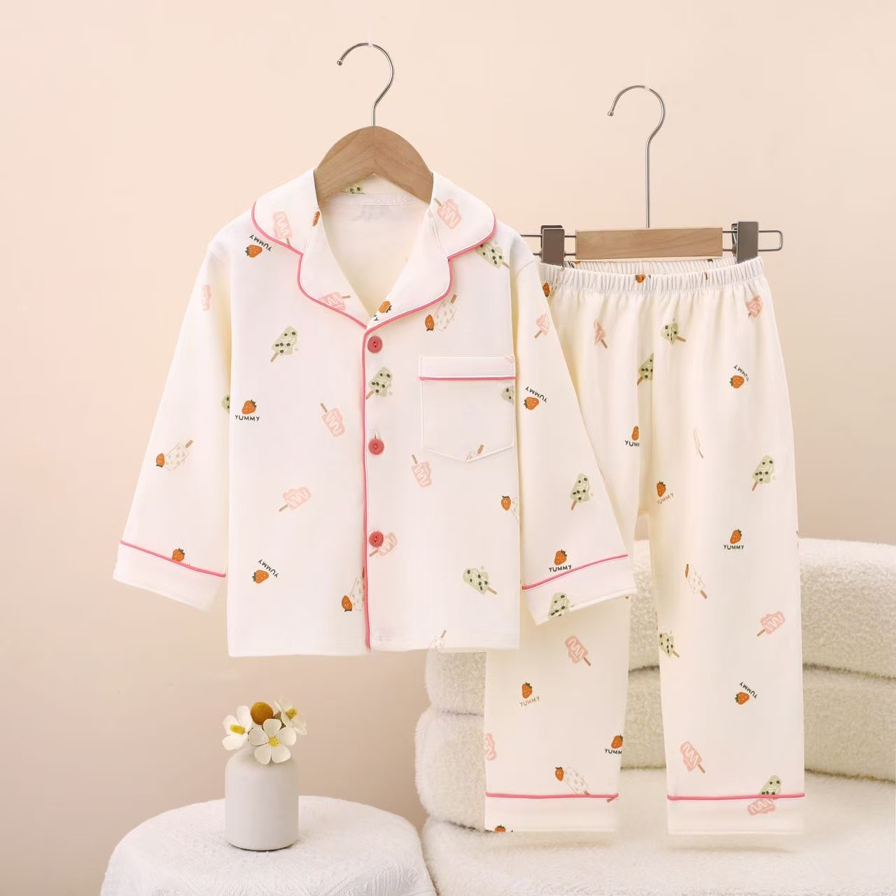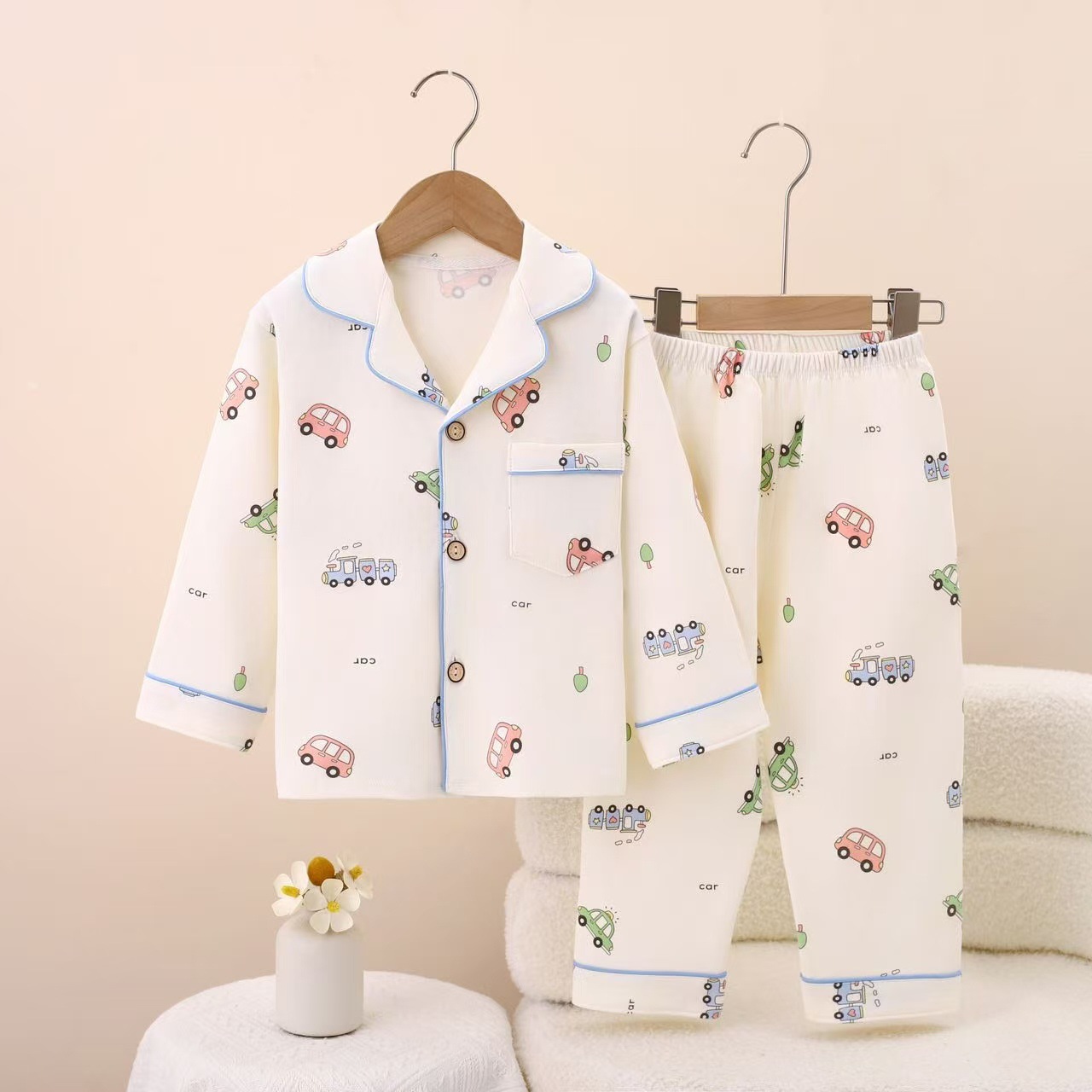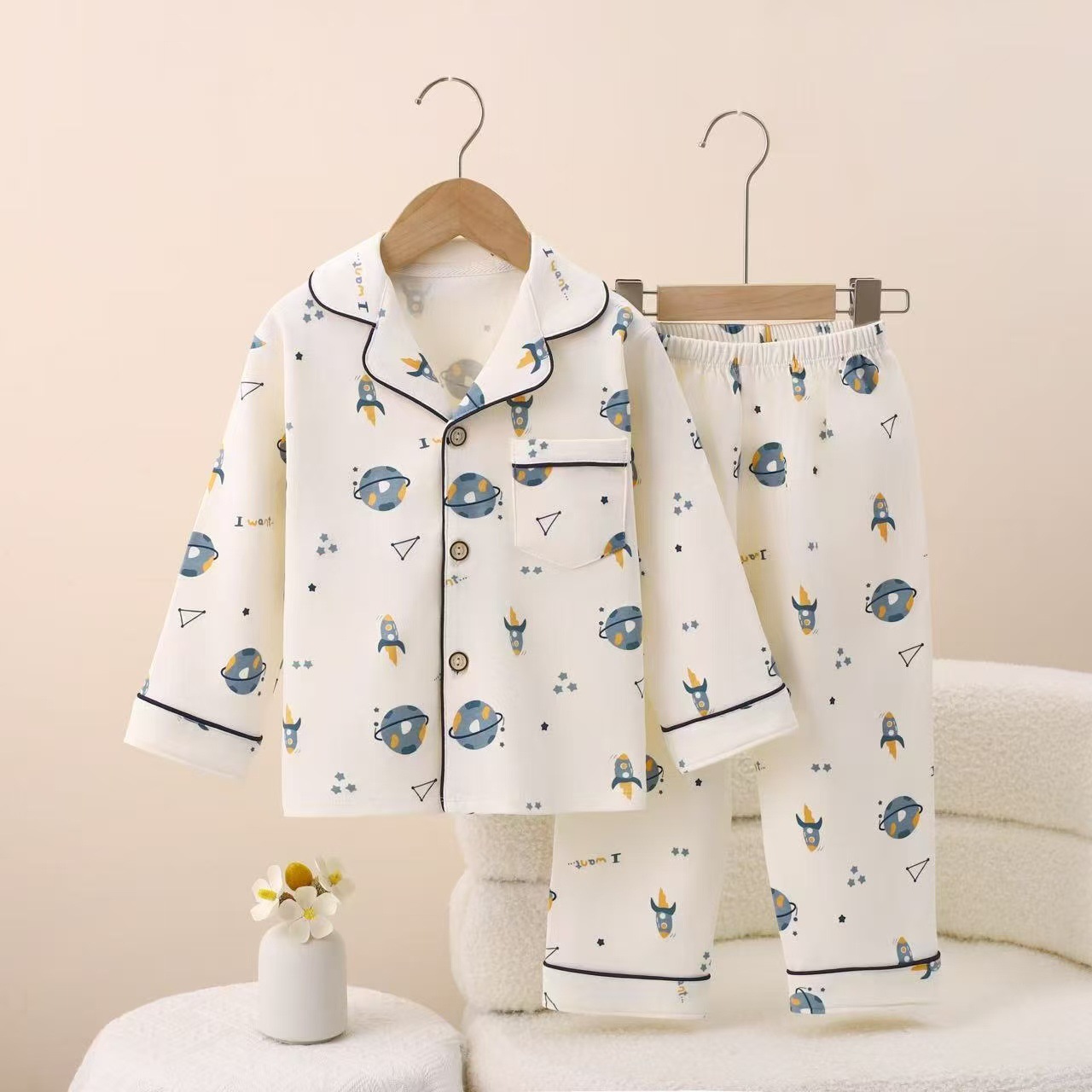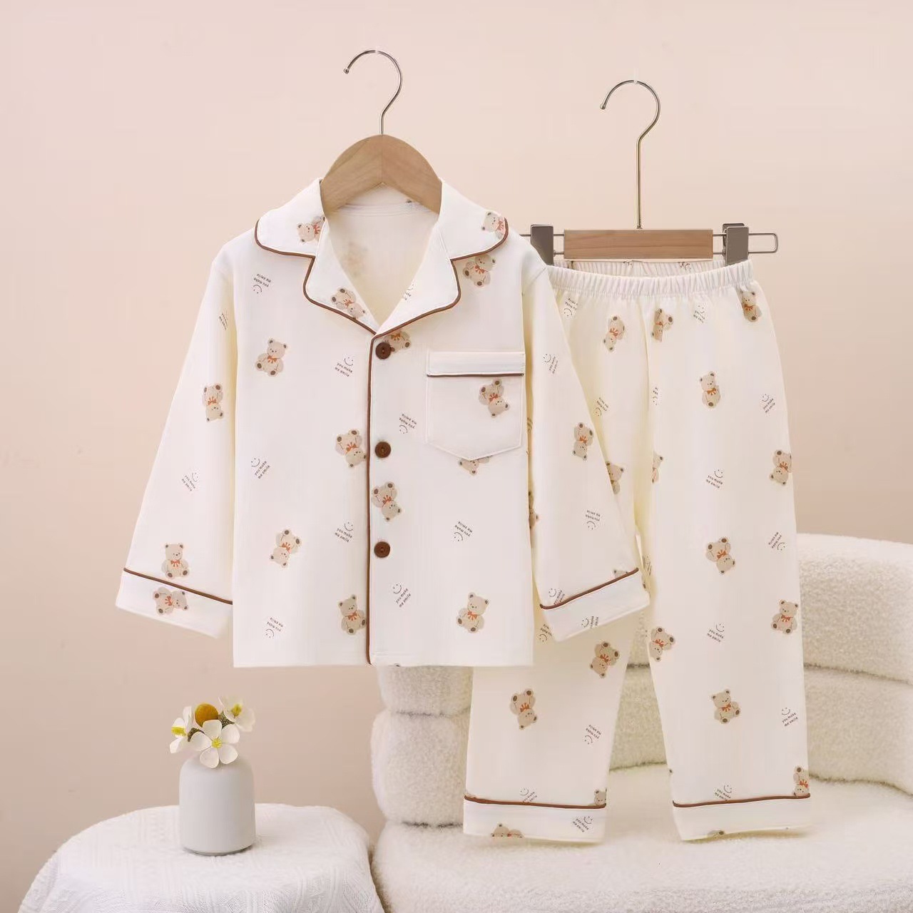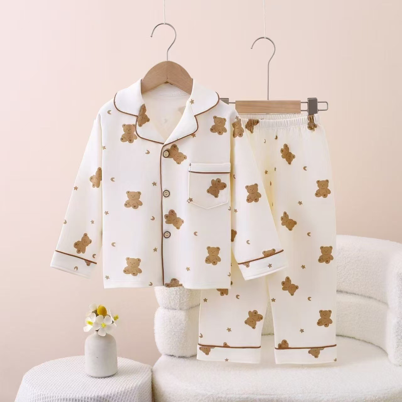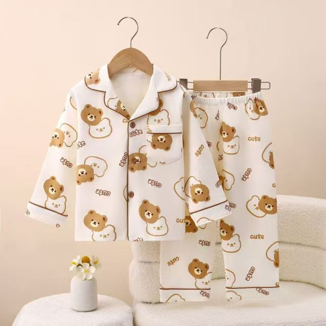 새로운 어린이 잠옷 봄과 가을 면화 소녀 긴 소매 바지 홈 옷 큰 아이 소년 소녀 만화 세트스토어 가기