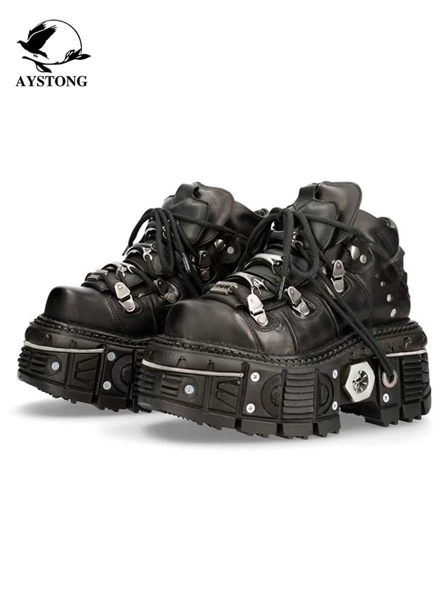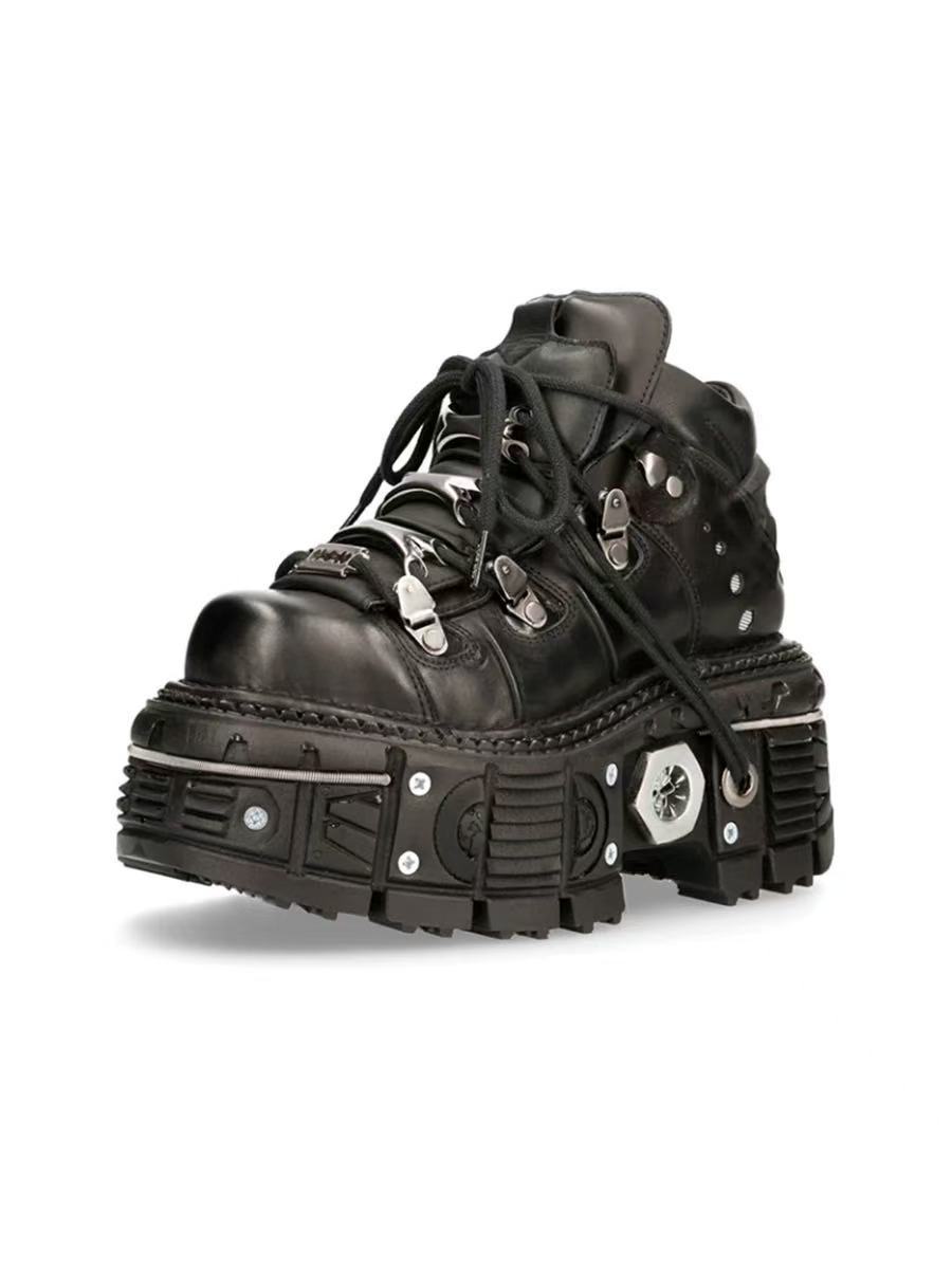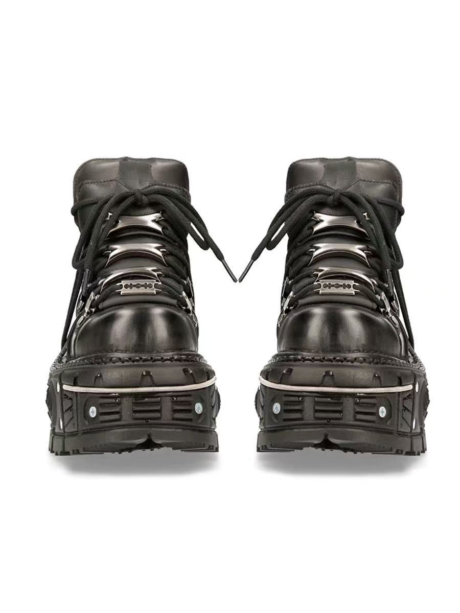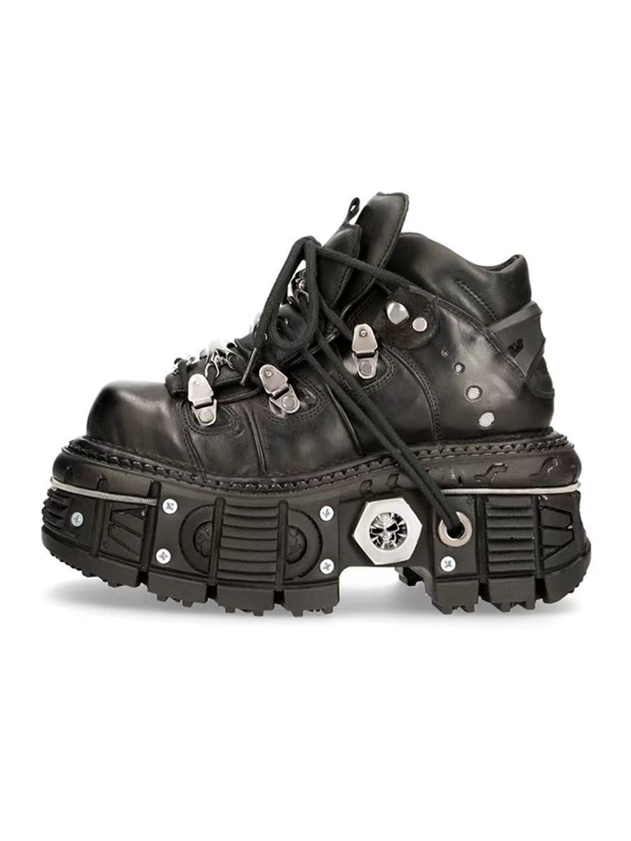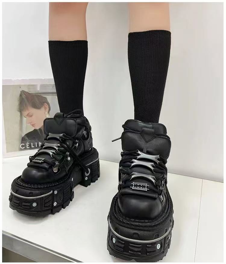 빈티지 스페인 탱크 단독 금속 하이 탑 신발 두꺼운 단독 작은 가죽 신발 다크 펑크 플랫폼 단독 거리 촬영 남성과 여성