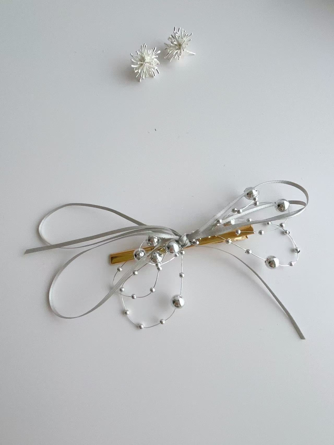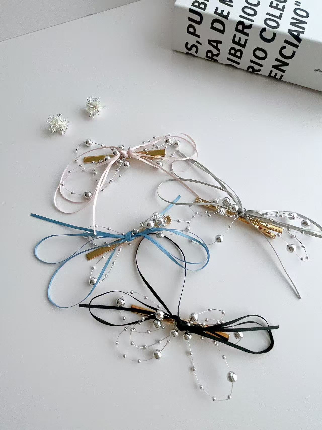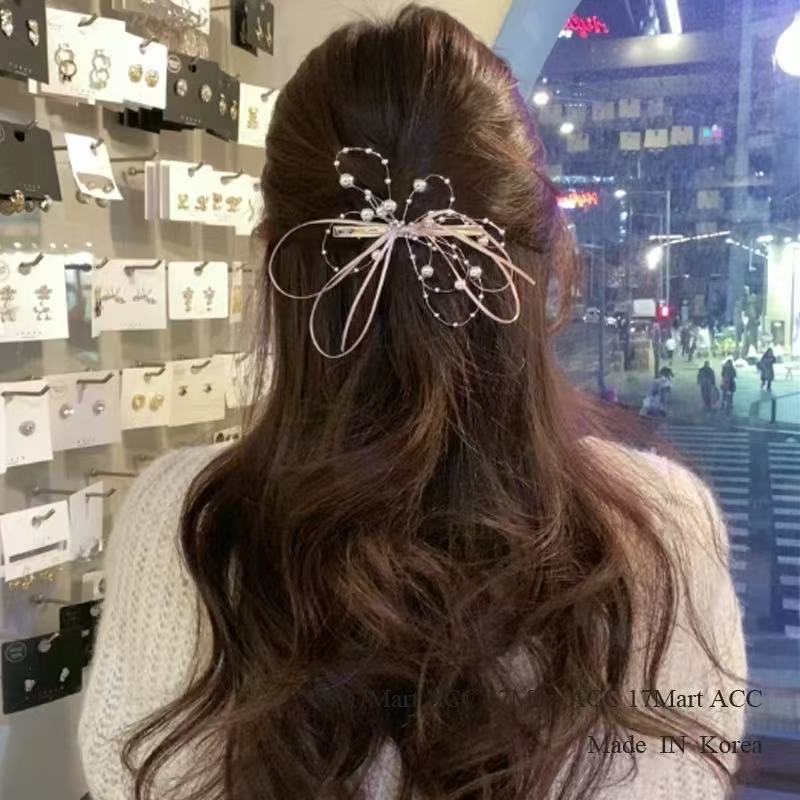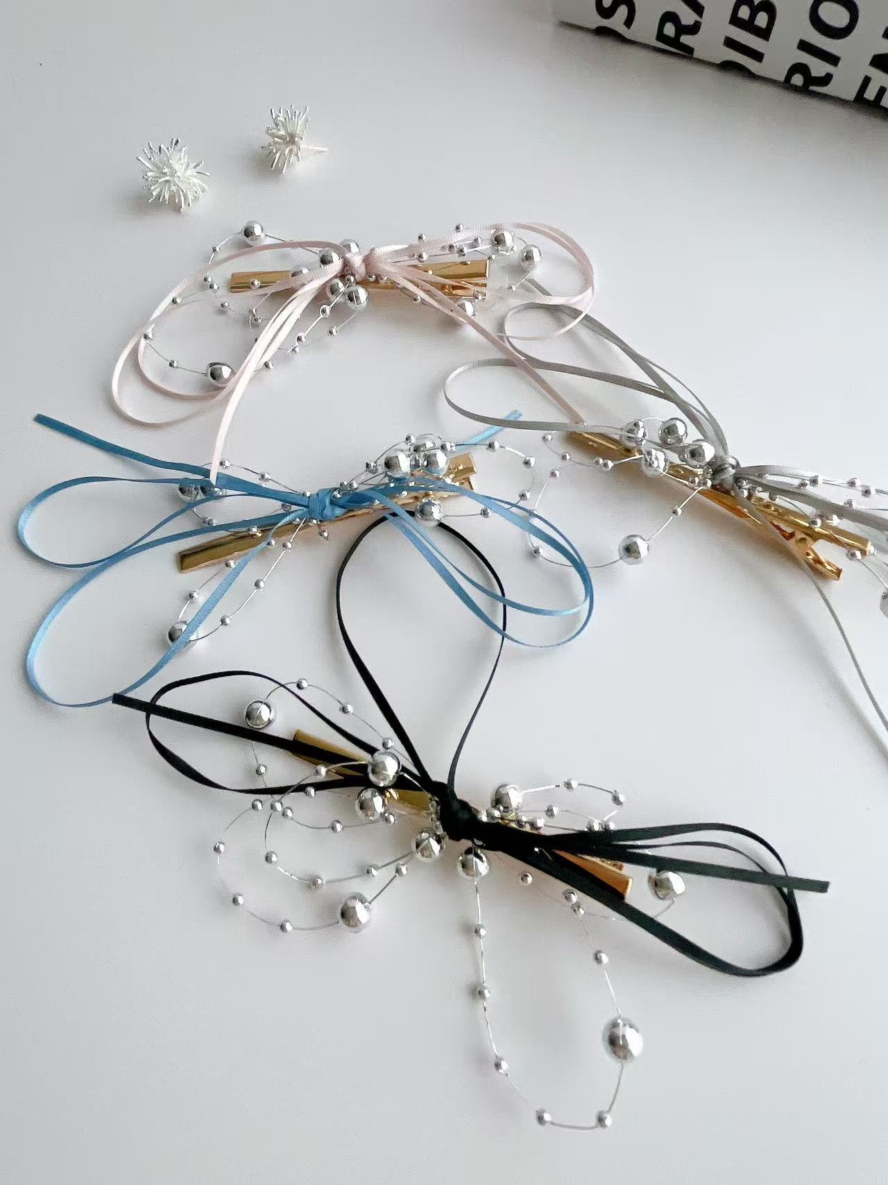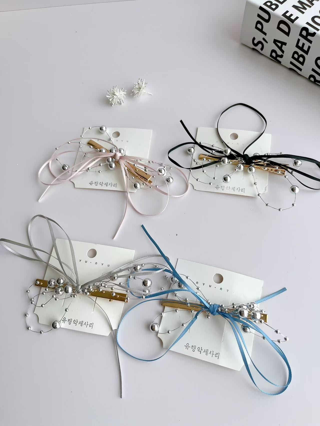 한국 동대문 실버 비드 보우 덕빌 클립 사이드 클립 뱅이 부러진 머리 반 넥타이 헤어 클립 헤어 클립 헤어핀 헤드웨어스토어 가기