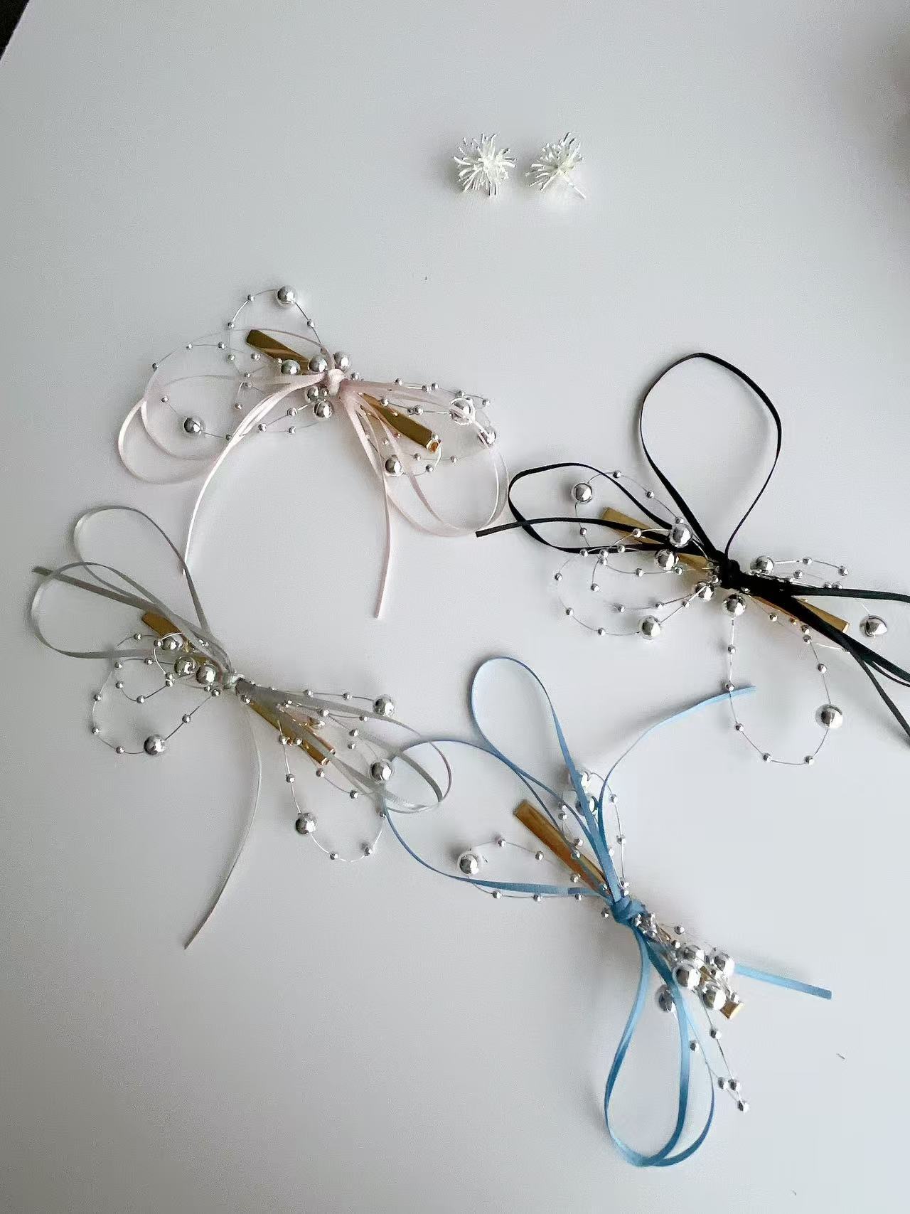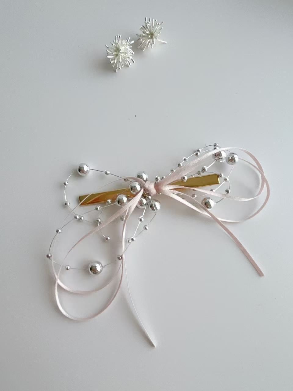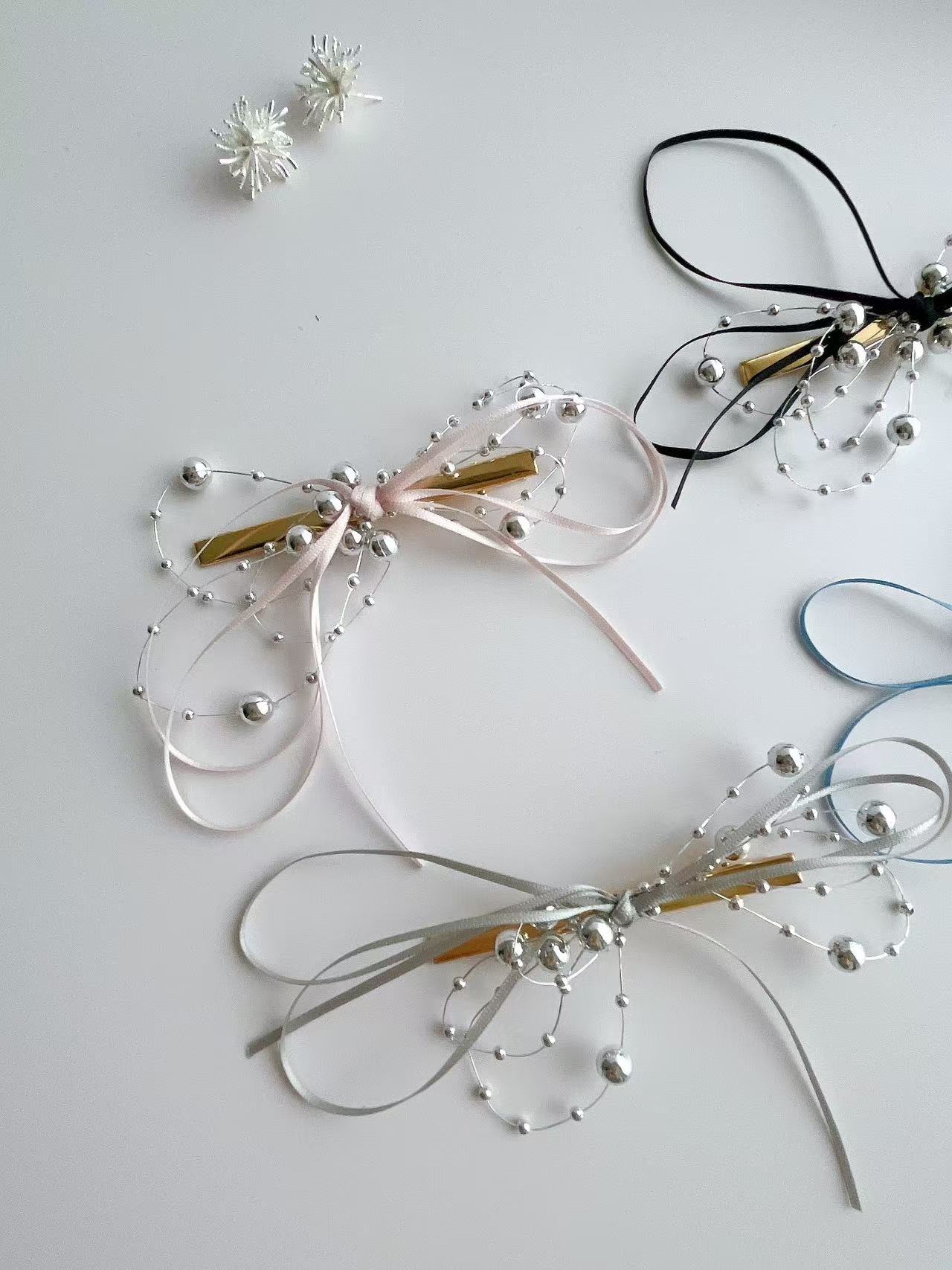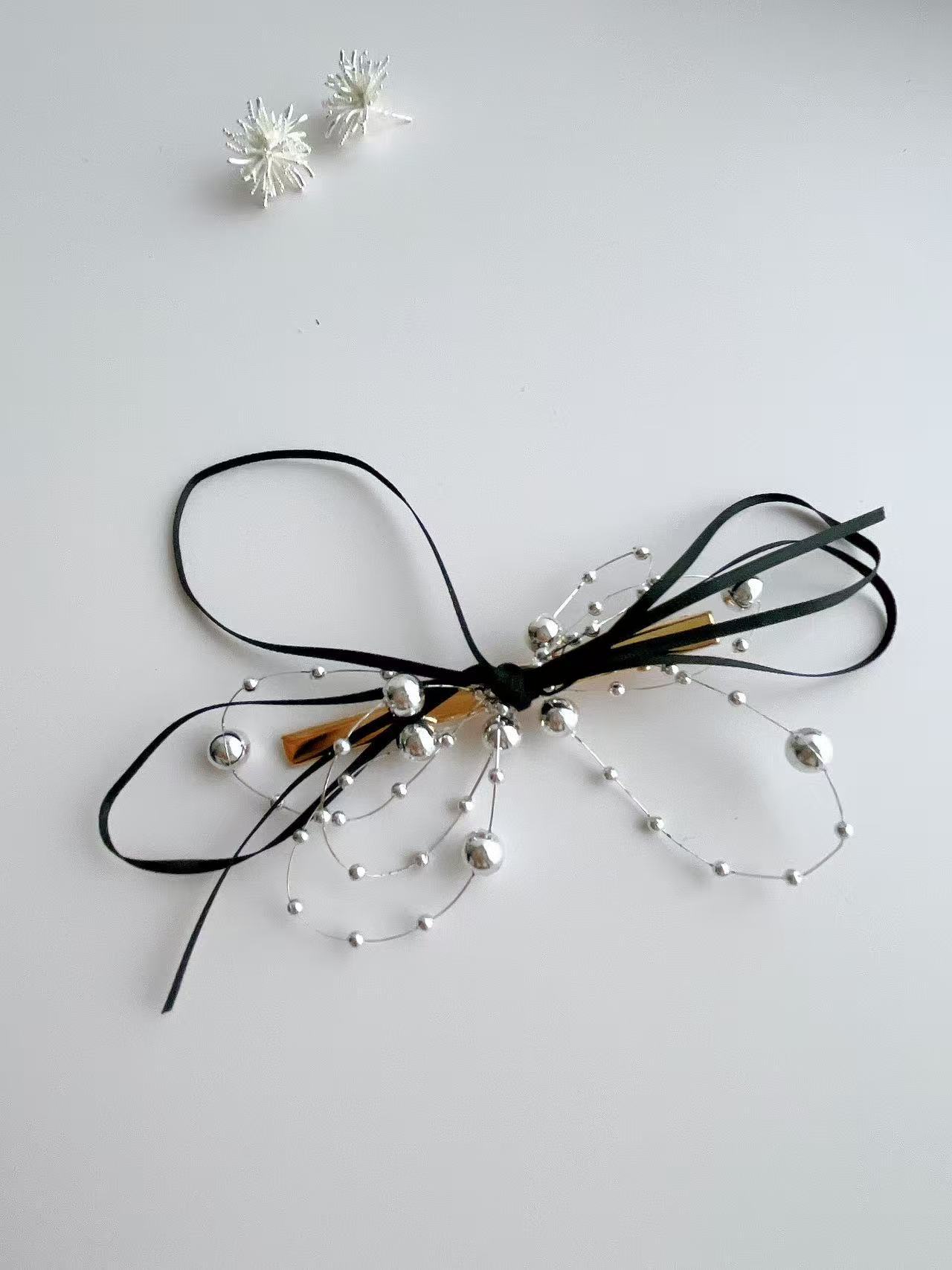 한국 동대문 실버 비드 보우 덕빌 클립 사이드 클립 뱅이 부러진 머리 반 넥타이 헤어 클립 헤어 클립 헤어핀 헤드웨어스토어 가기