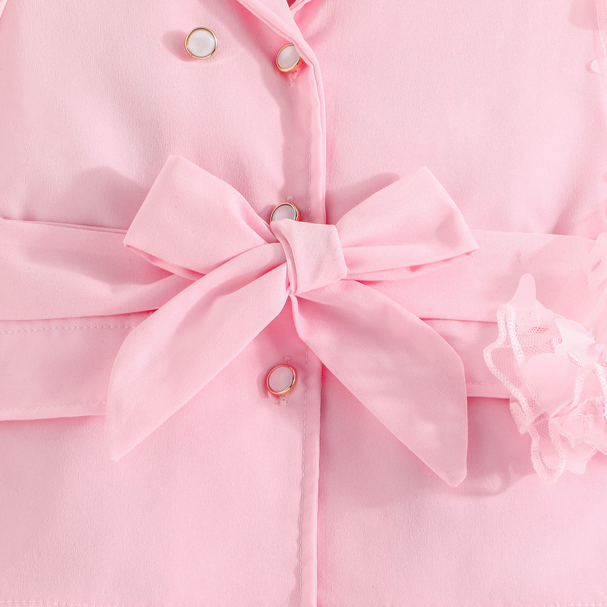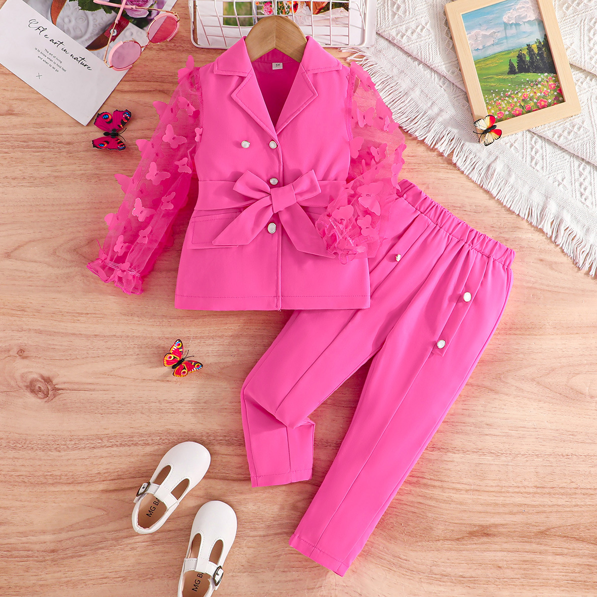 국경 독점-소녀의 봄과 가을 패션 달콤한 스타일 어린이 세트 절묘한 레이스 소매 세트 투피스