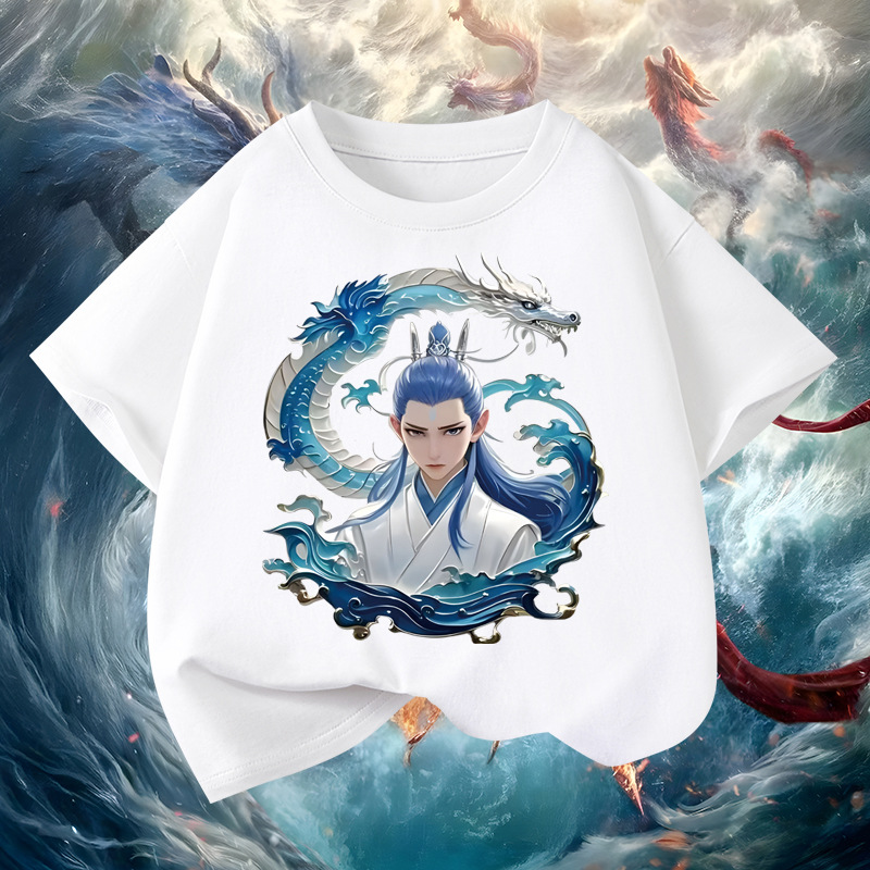어린이 Nezha Naohai 퓨어 코튼 반팔 티셔츠 2025 여름 새로운 느슨한 남녀 아동복 만화 올 매치 탑