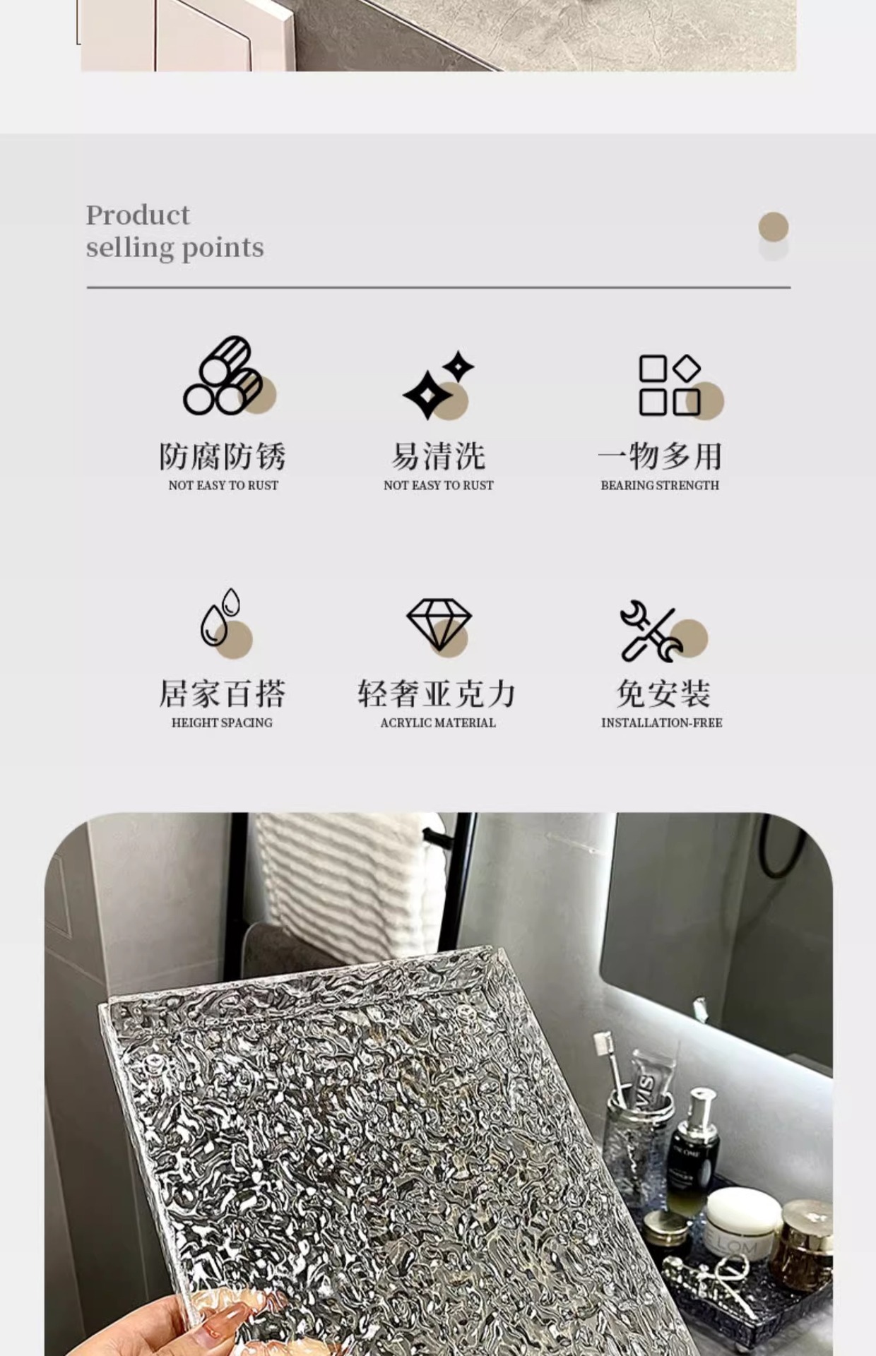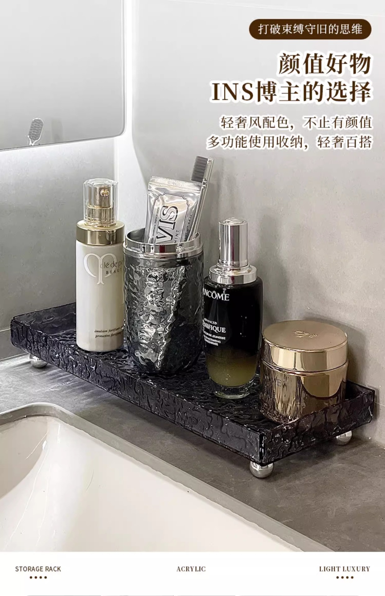 아크릴 욕실 랙 카운터 탑 세면대 트레이 욕실 화장실 세척 싱크대 사이드 보관 상자