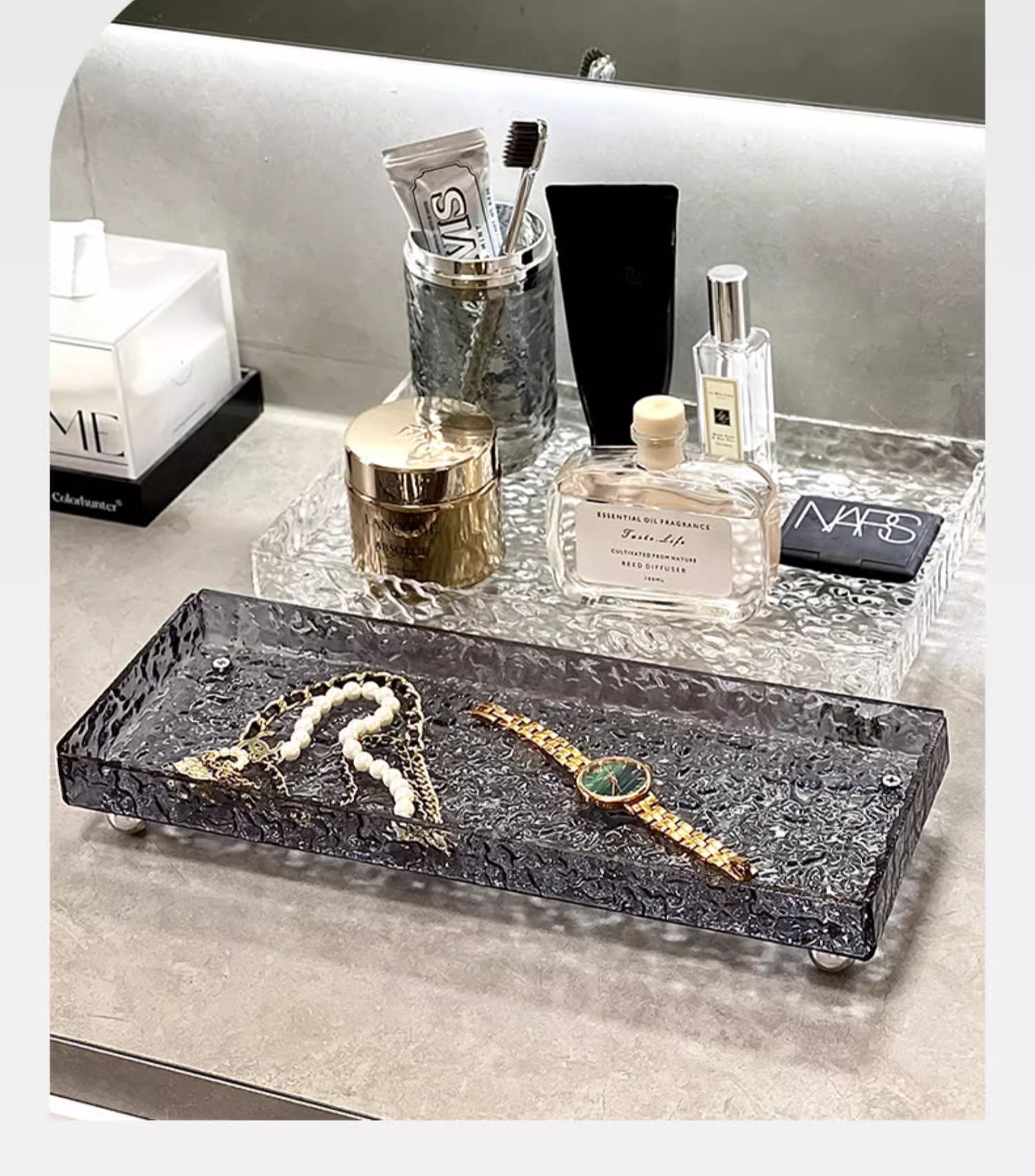 • 물잔물결 트레이 그레이 투명 대형