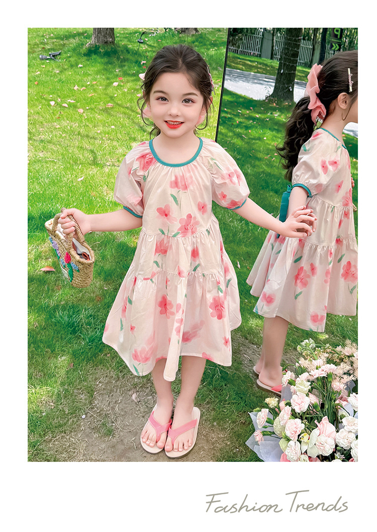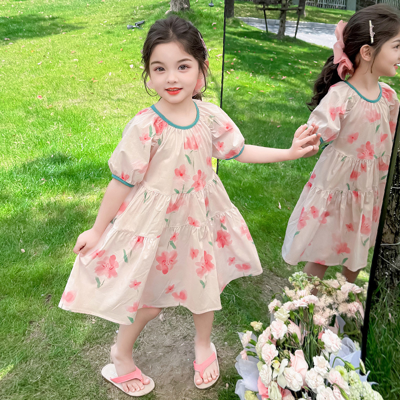 소녀 꽃 케이크 치마 2025 여름 새로운 패션 소녀 세련된 공주 치마 중소 아이 원피스스토어 가기