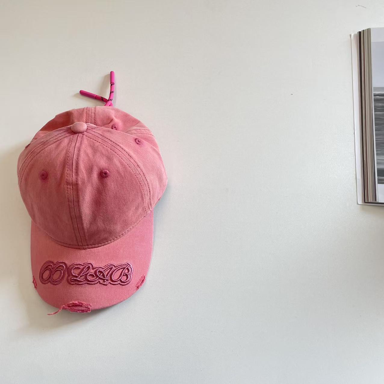 Emo Beibei 부모-어린이 ~ 구멍 중공 편지 세탁 모자 어린이 짠 벨트 선 스크린 야구 모자 조수