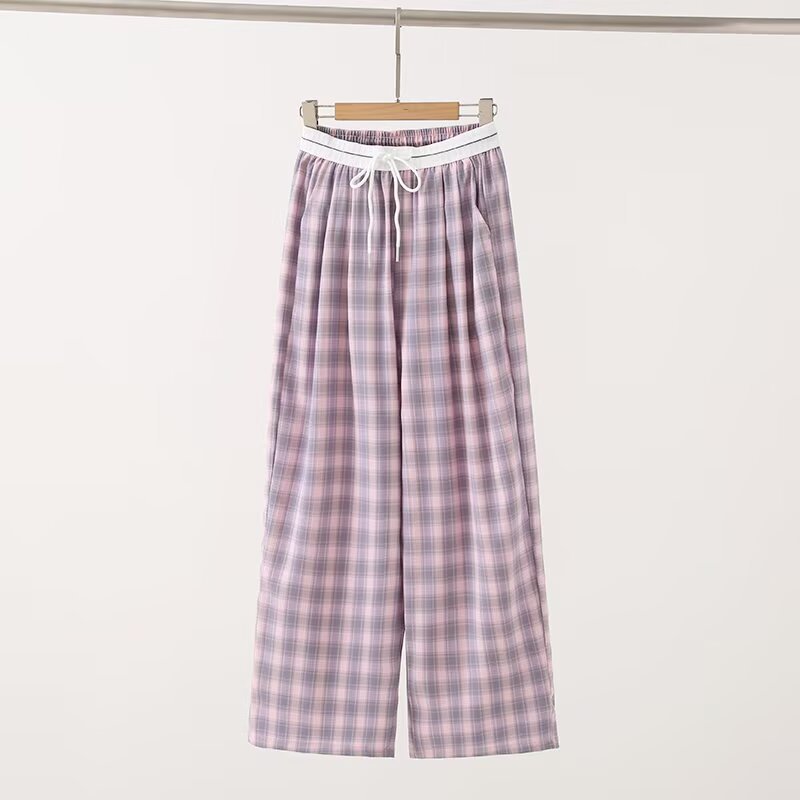 UC & ZA 대외 무역 국경 여성 2025 년 여름 새로운 느슨한 허리 끈 레트로 격자 무늬 느슨한 넓은 다리 바지스토어 가기
