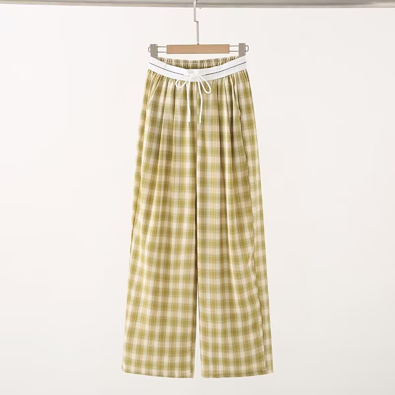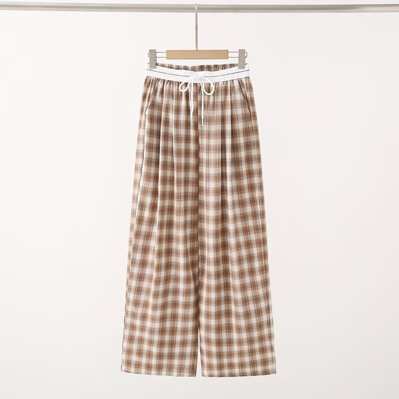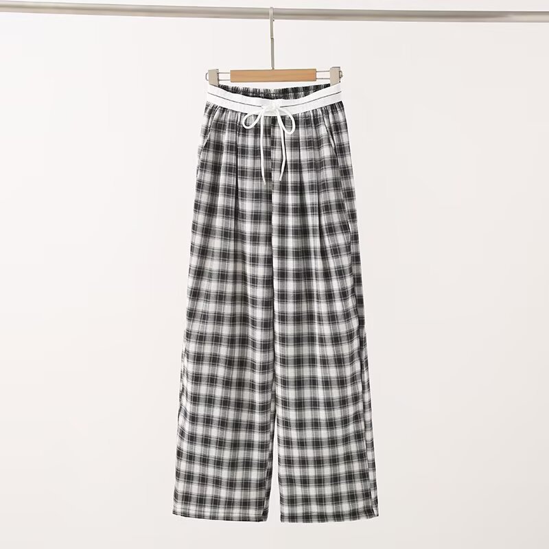 UC & ZA 대외 무역 국경 여성 2025 년 여름 새로운 느슨한 허리 끈 레트로 격자 무늬 느슨한 넓은 다리 바지