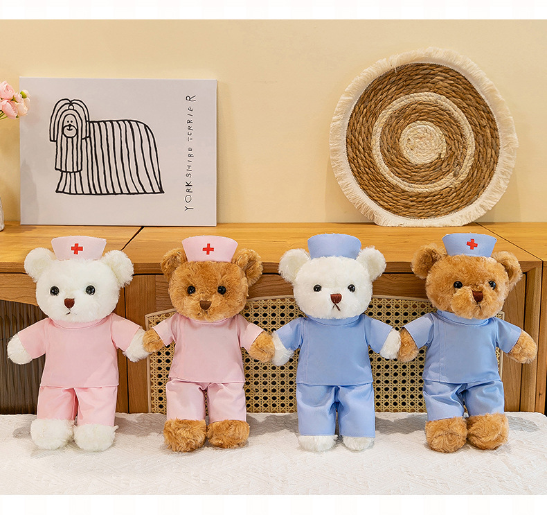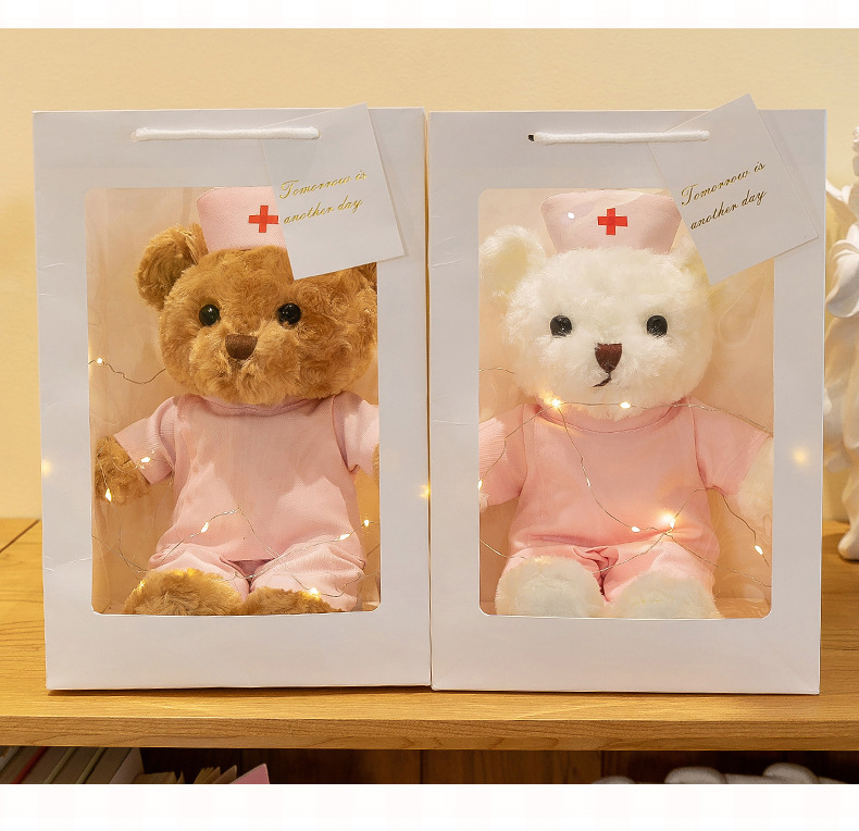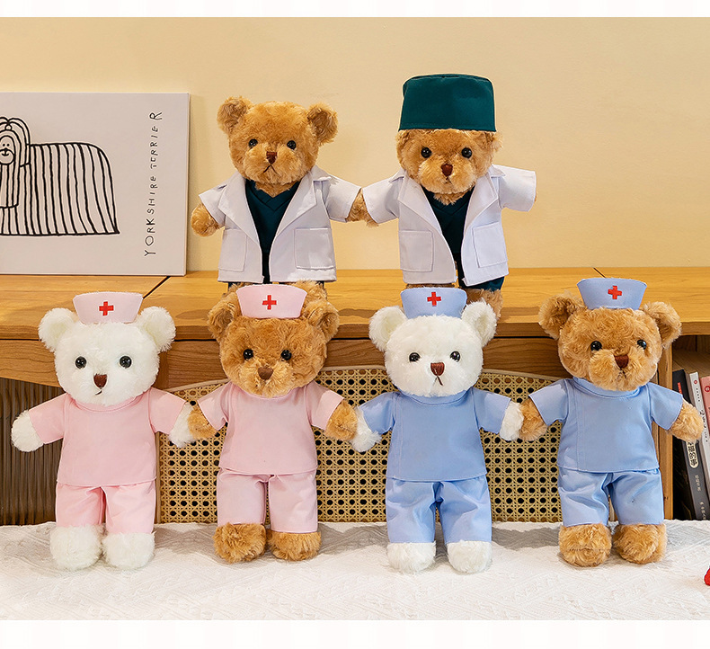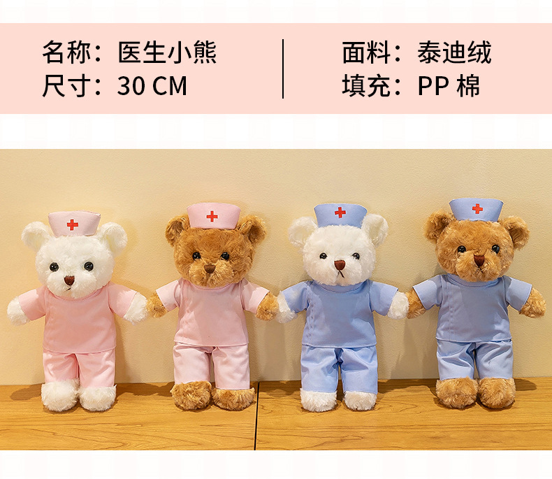 닥터 베어 인형 테디 플러시 장난감 곰 의료 인형 인형 크리 에이 티브 로고 간호사를위한 무료 휴일 선물스토어 가기