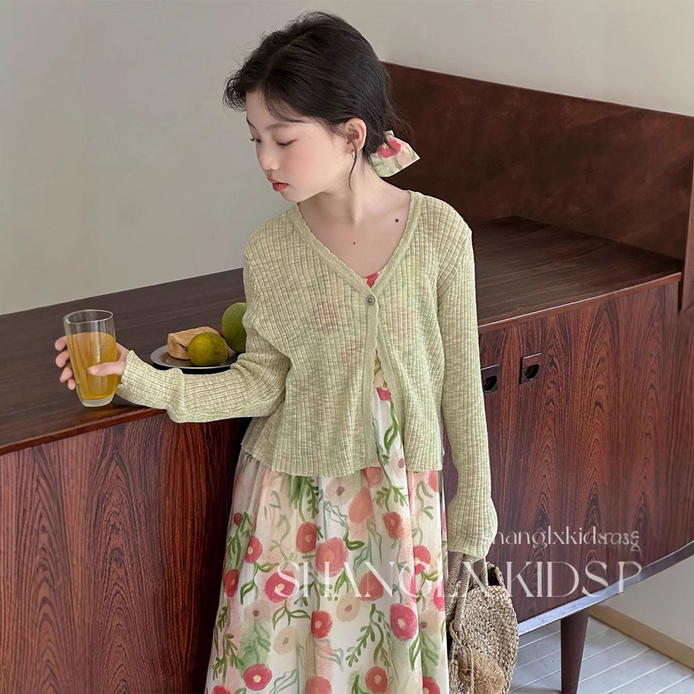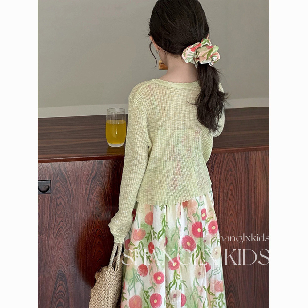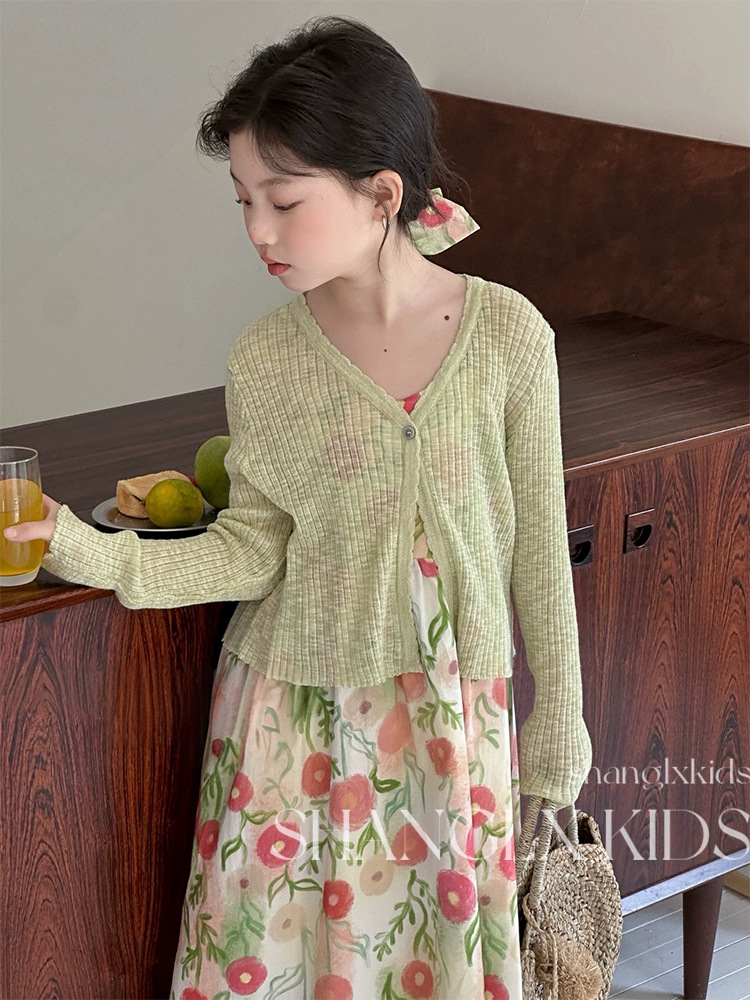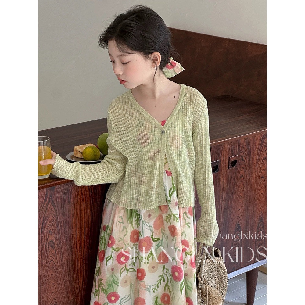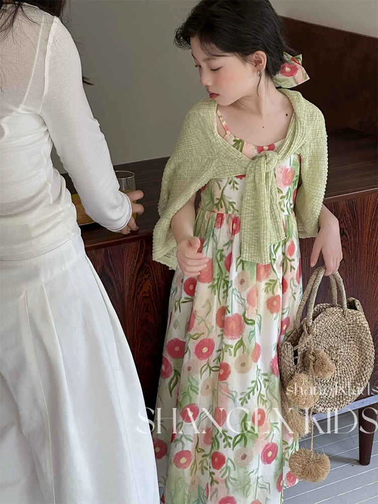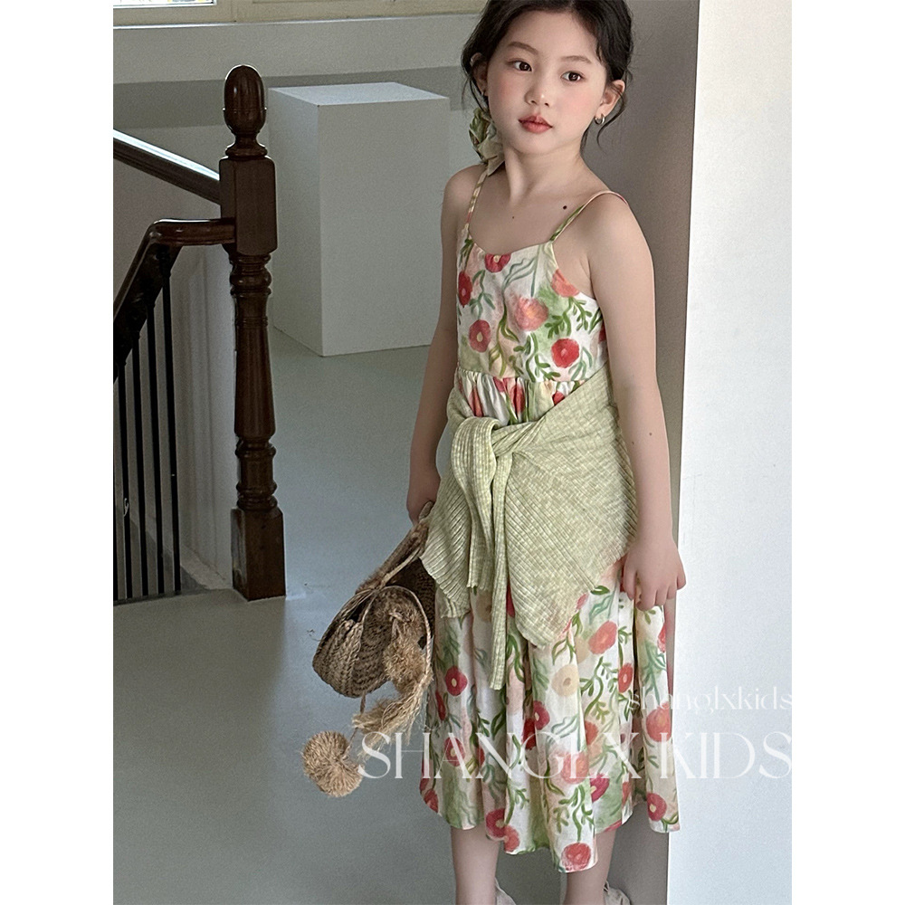 소녀의 꽃 원피스 2025 년 여름 새로운 스타일 어린이 슬링 롱 원피스 소녀 카디건 투피스 트렌디