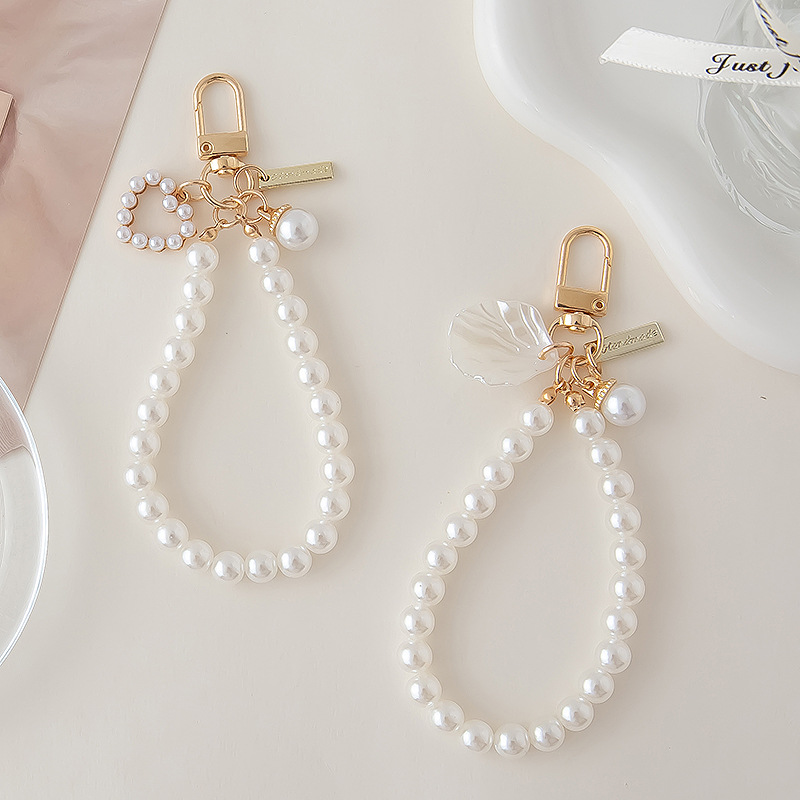 진주 조개 자동차 키체인 하트 레트로 미녀 머리 모양 핸드폰 줄 비즈 가방 장식품 펜던트