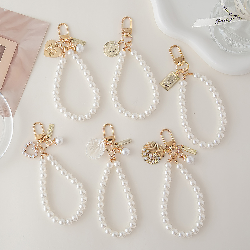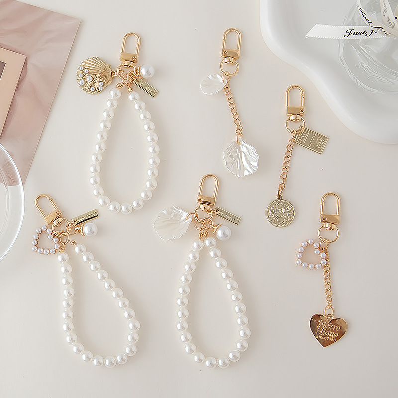 진주 조개 자동차 키체인 하트 레트로 미녀 머리 모양 핸드폰 줄 비즈 가방 장식품 펜던트스토어 가기