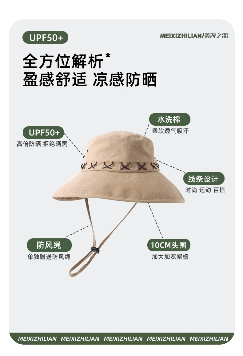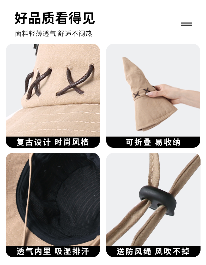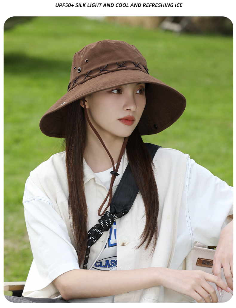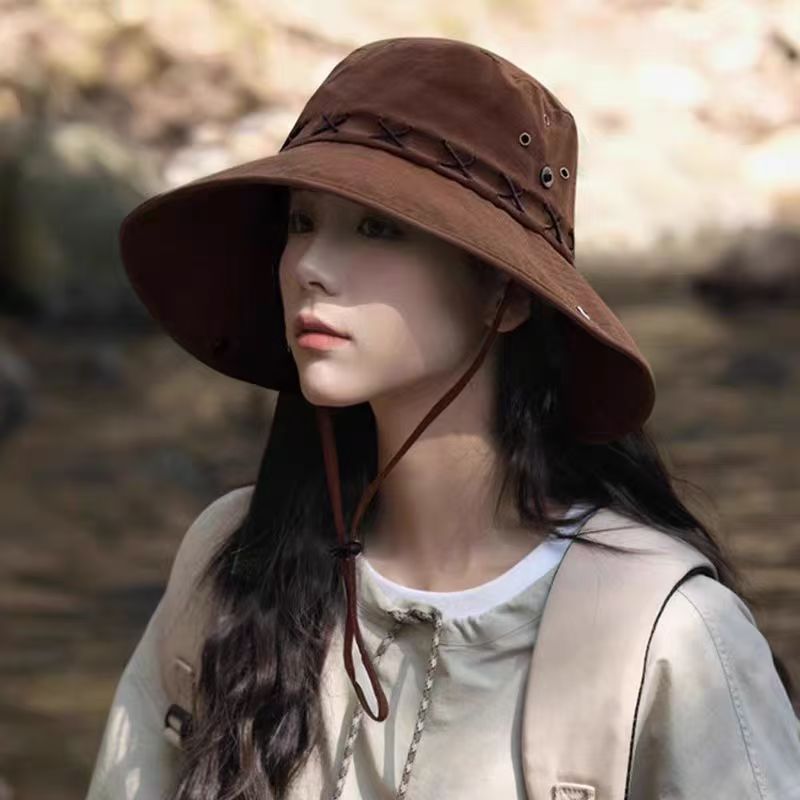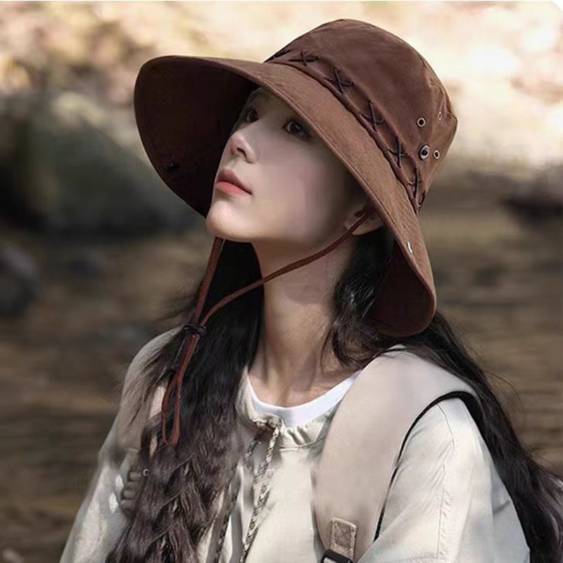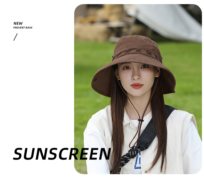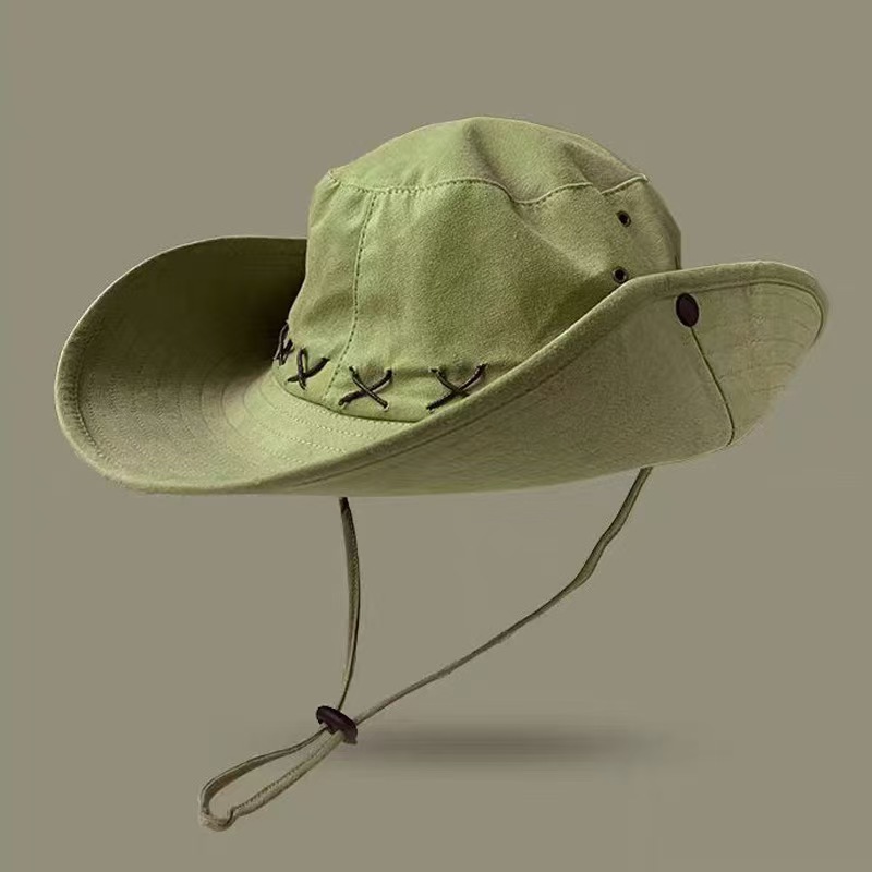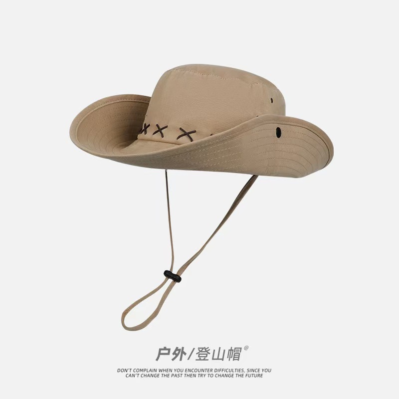 • 카키 스웨이드 크로스 로프 아웃도어 하이킹 모자
