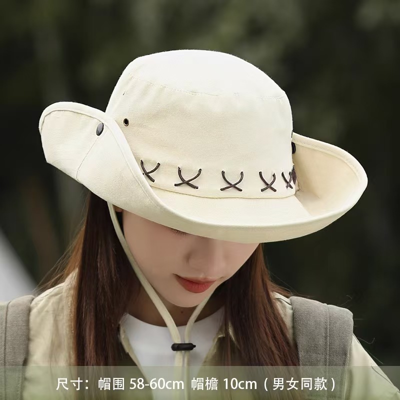 • 오프화이트 스웨이드 크로스 로프 아웃도어 하이킹 모자