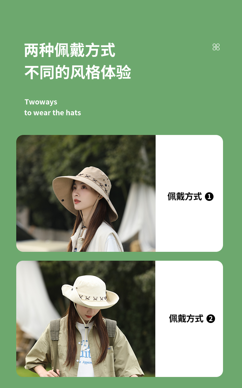 • 그린 스웨이드 크로스 로프 야외 하이킹 모자