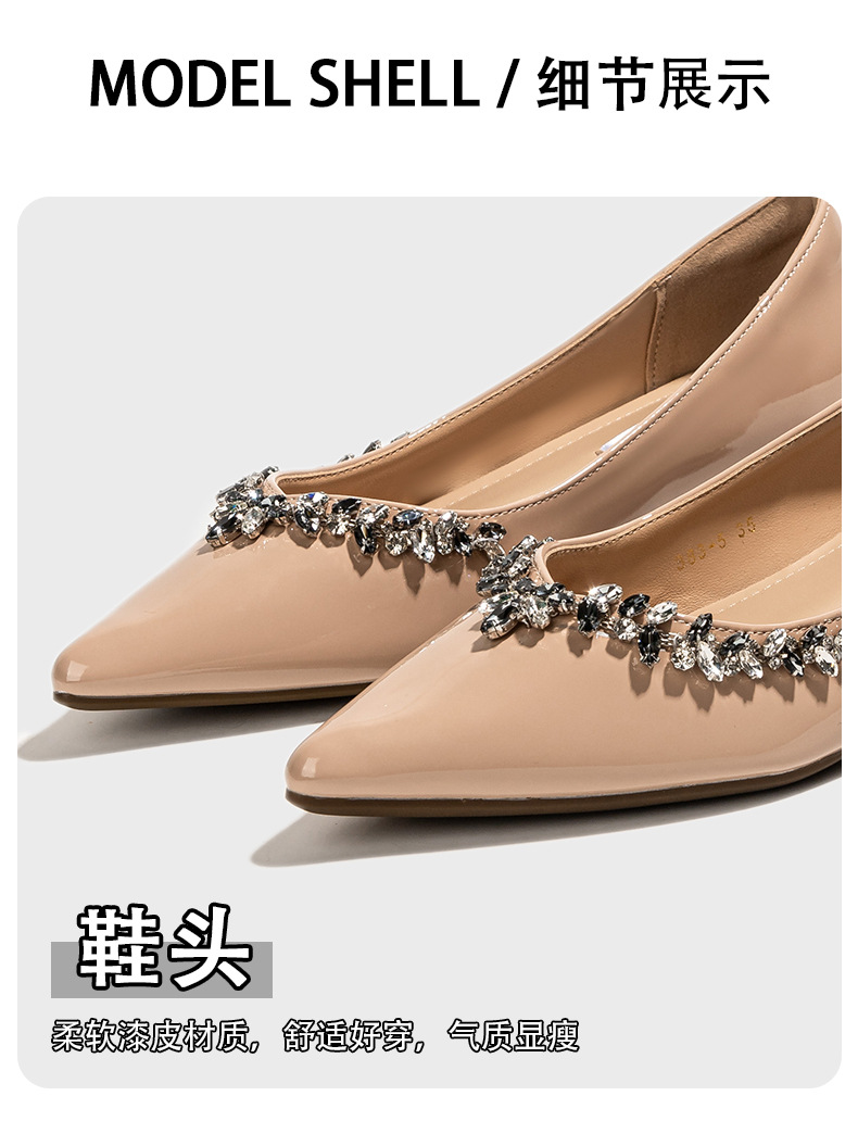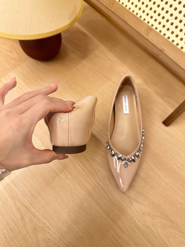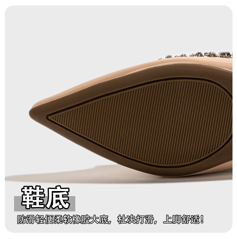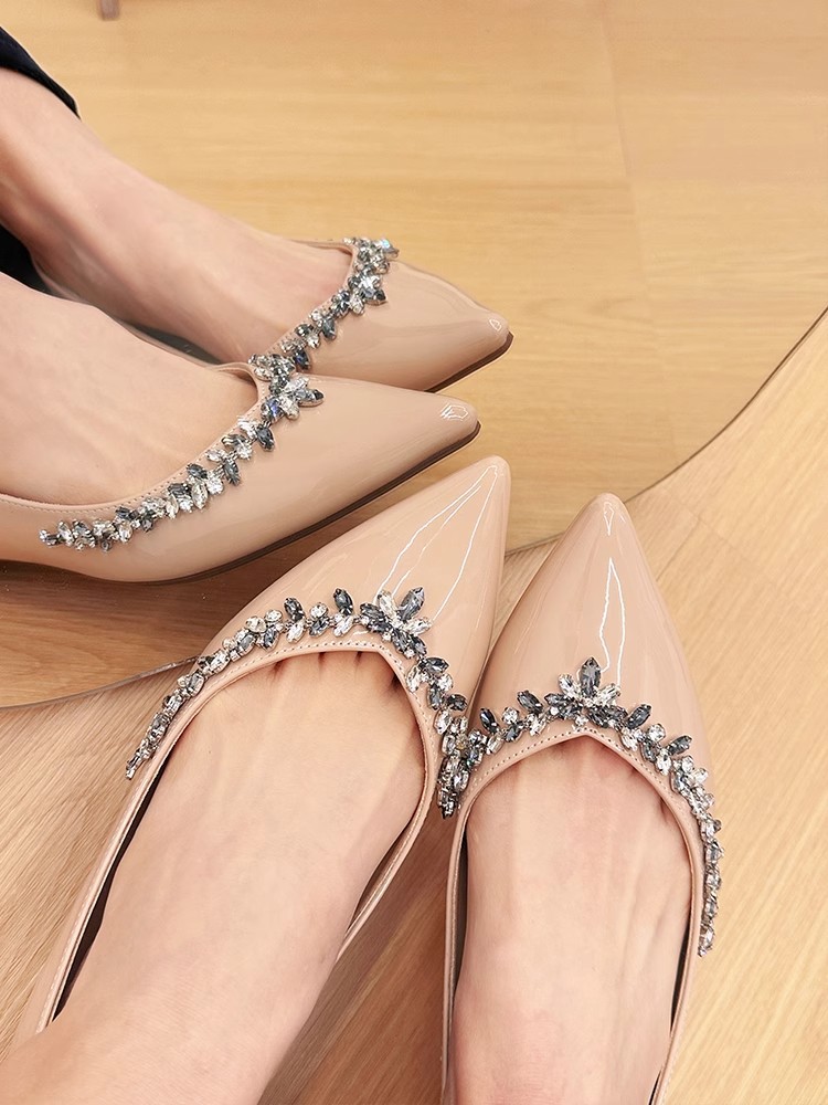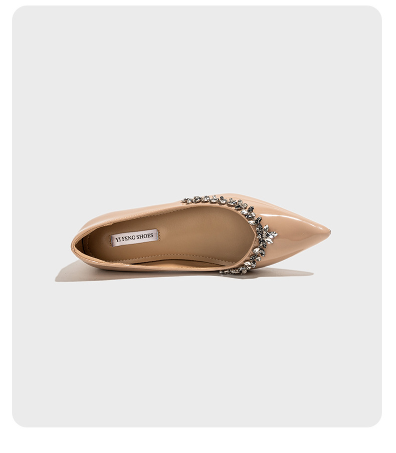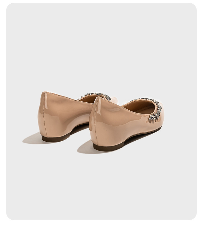정품 가죽 ~ 프랑스 심야 스타일 라인스톤 포인팅 플랫 신발 여성용 얕은 입 내부 높이 증가 싱글 레이어 신발 통근 여성 신발 소프트 솔