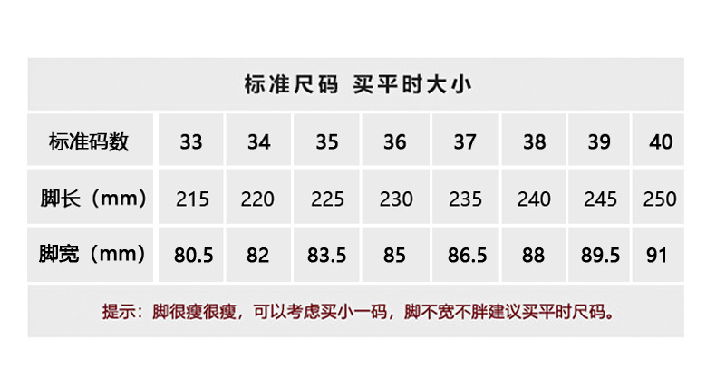 尺码表