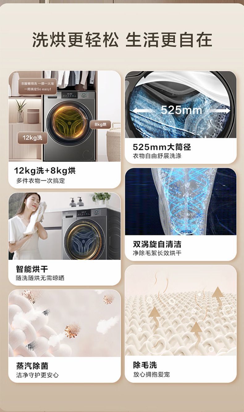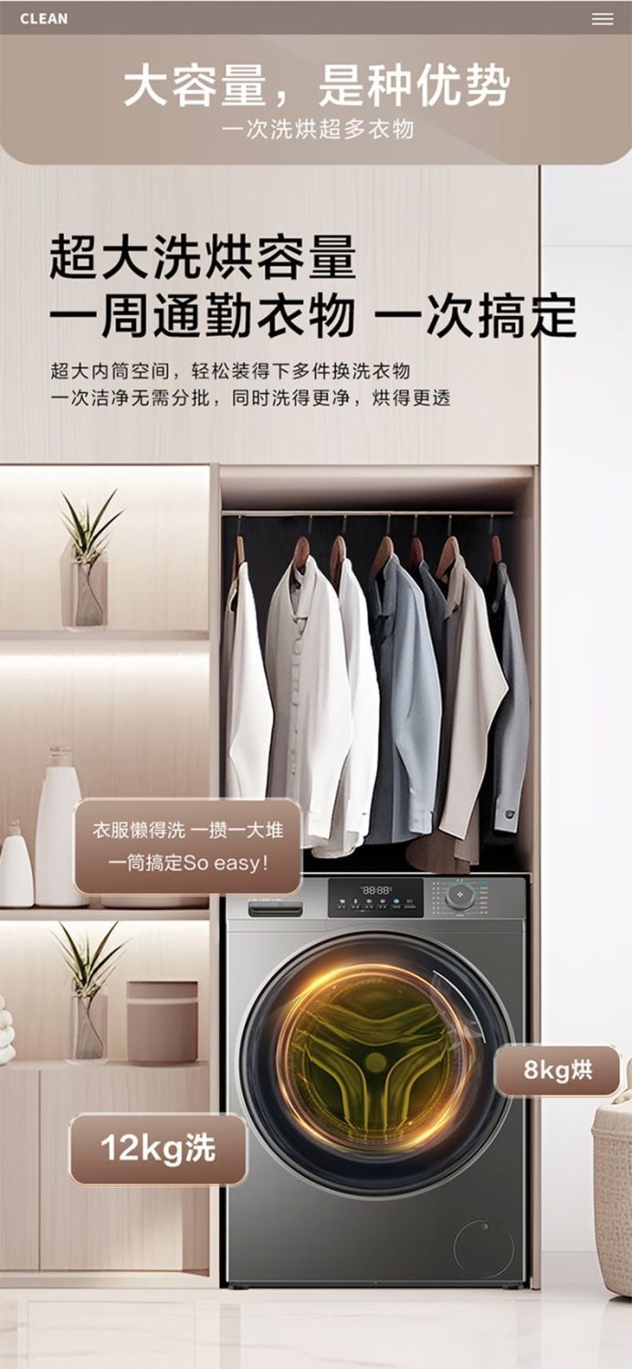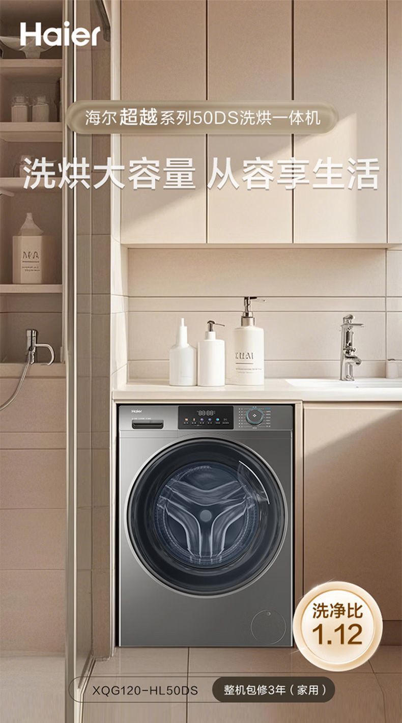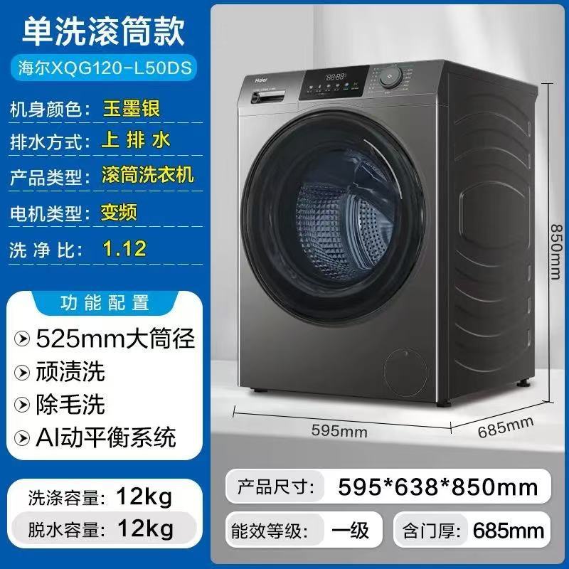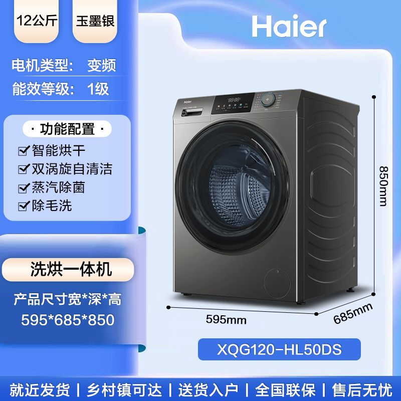 Haier 12kg kg 세탁 및 건조 통합 초박형 드럼 세탁기 가정용 완전 자동 살균 및 진드기 이중 스프레이 50DS스토어 가기