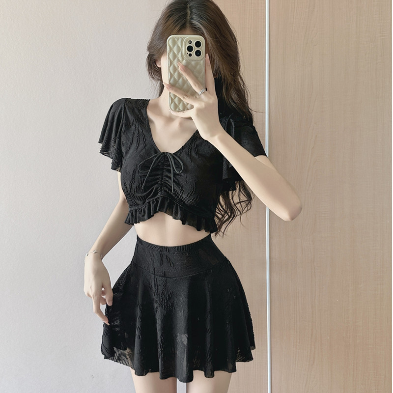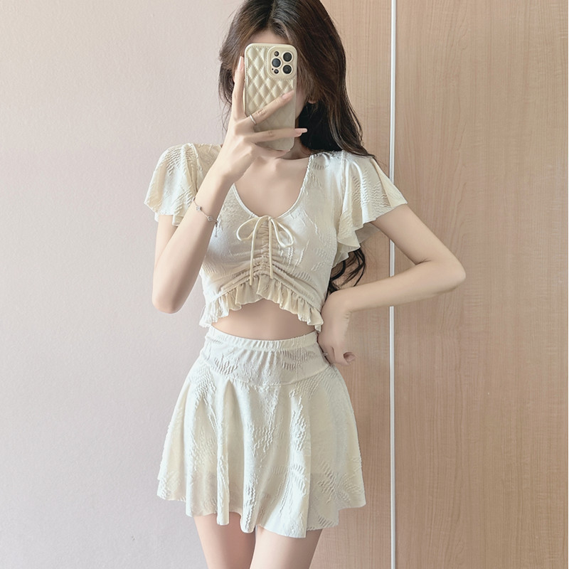 요정 분할 수영복 여성의 보수적 인 슬림 배꼽 덮음 레이스 텍스트 온천 휴일 소녀 온천 수영복스토어 가기