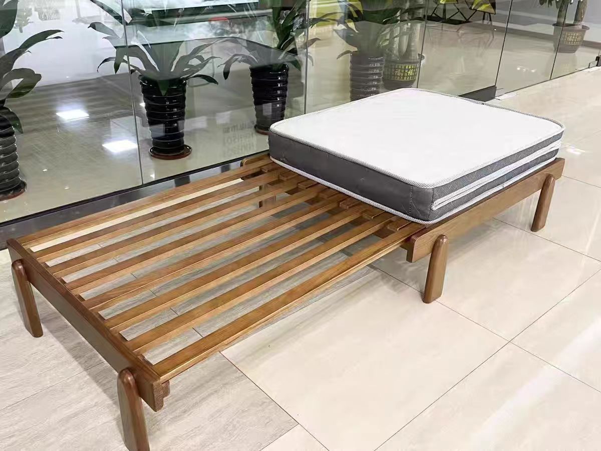 • 호두색 목재 왁스 오일 0.7m 플러스 8cm 라텍스 매트리스 포함 길이 1.15m - 2.1m