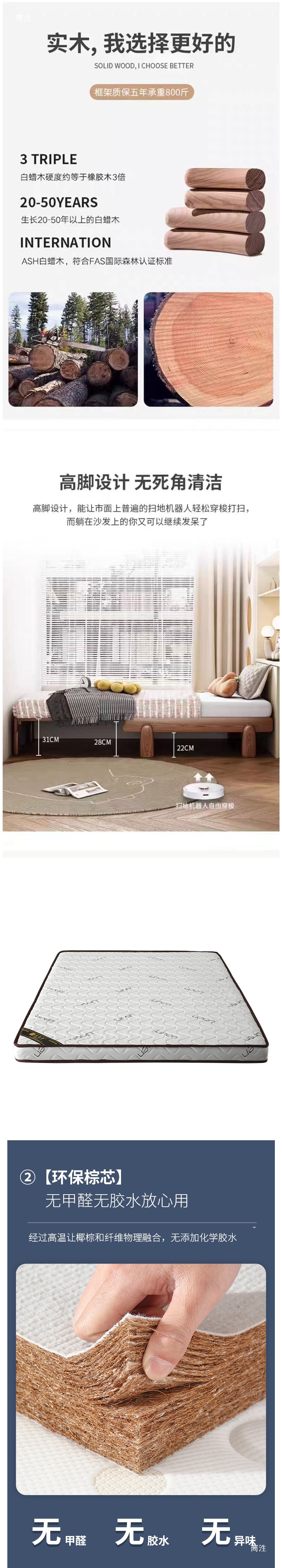 • 호두색 목재 왁스 오일 1.5m 플러스 8cm 라텍스 매트리스 포함 길이 1.15m - 2.1m