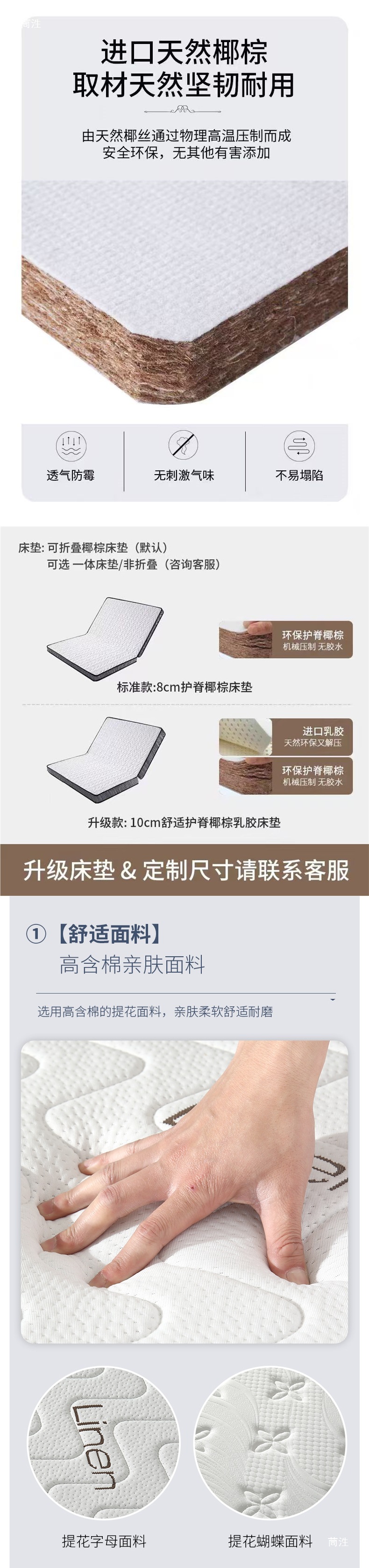 • 호두색 목재 왁스 오일 0.8m 플러스 8cm 라텍스 매트리스 포함 길이 1.15m - 2.1m