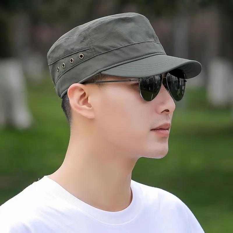 • 8개의 공기 구멍이 있는 플랫 탑 캡 밀리터리 그린