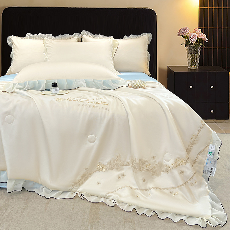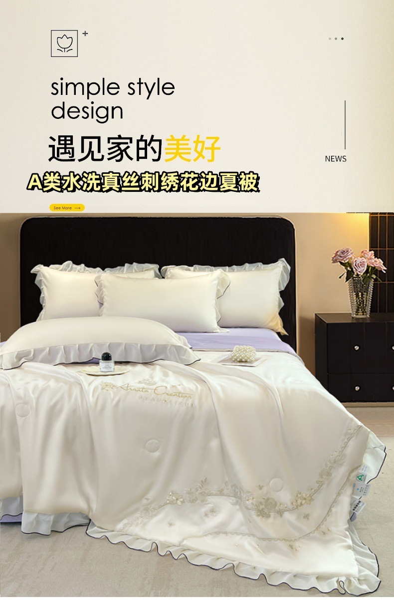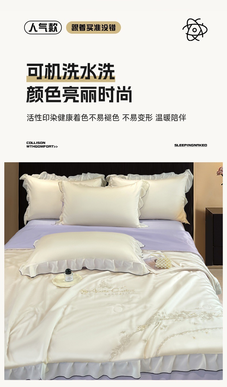 클래스 A 워시 실크 자수 여름 이불 4피스 여름 시원한 이불 더블 에어컨 이불은 즉시 냉각되지만 얼지 않습니다.스토어 가기