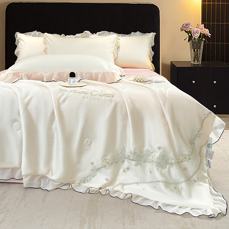 클래스 A 워시 실크 자수 여름 이불 4피스 여름 시원한 이불 더블 에어컨 이불은 즉시 냉각되지만 얼지 않습니다.