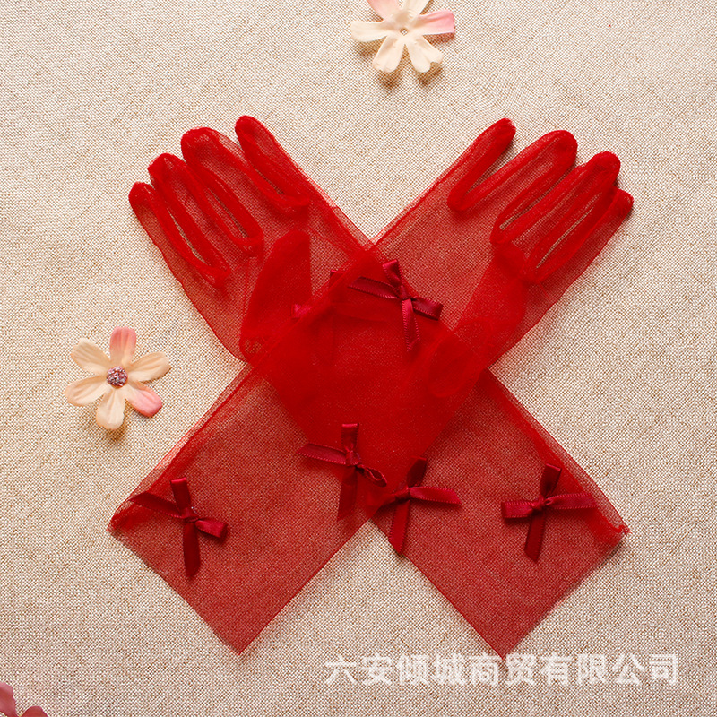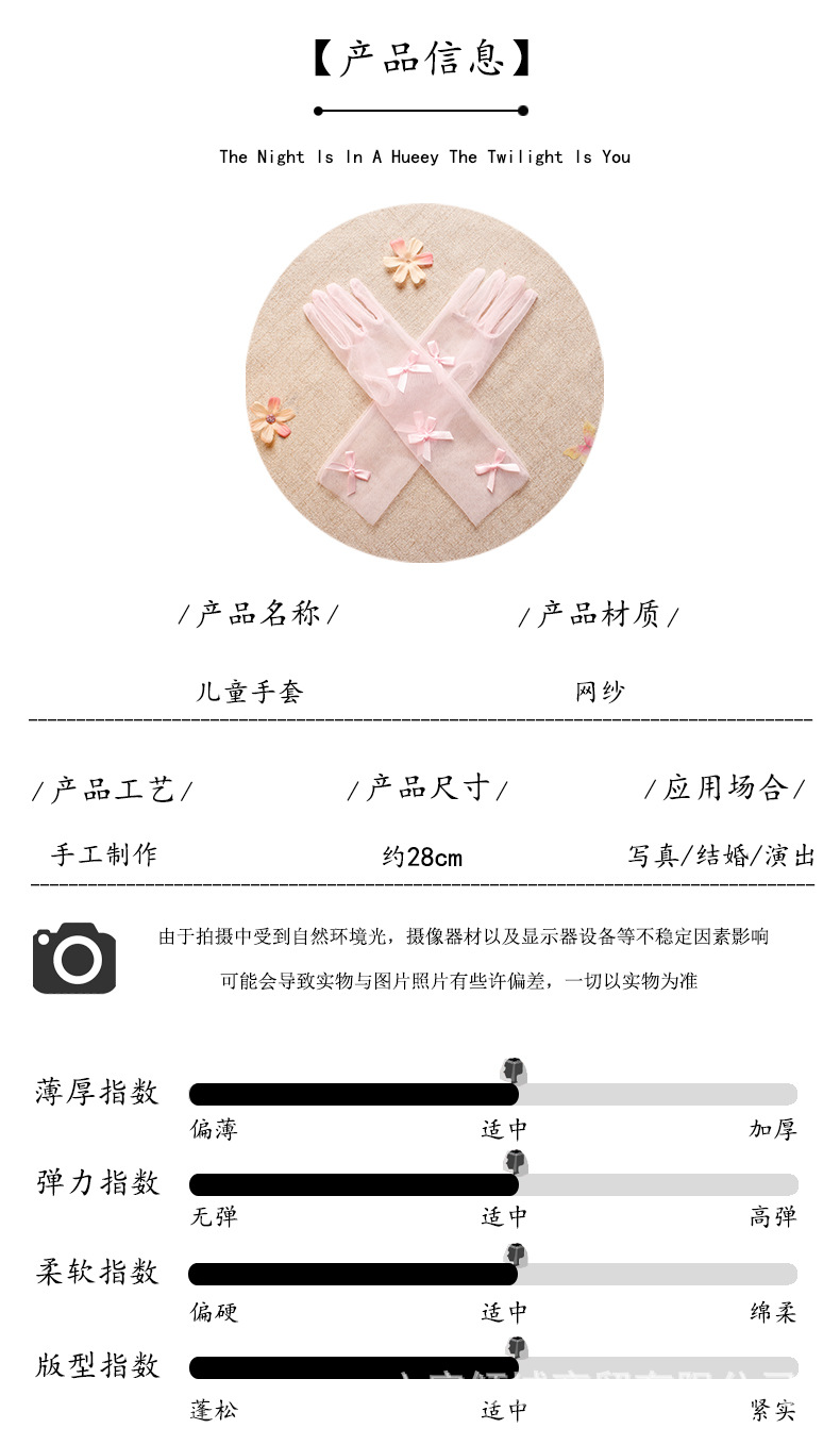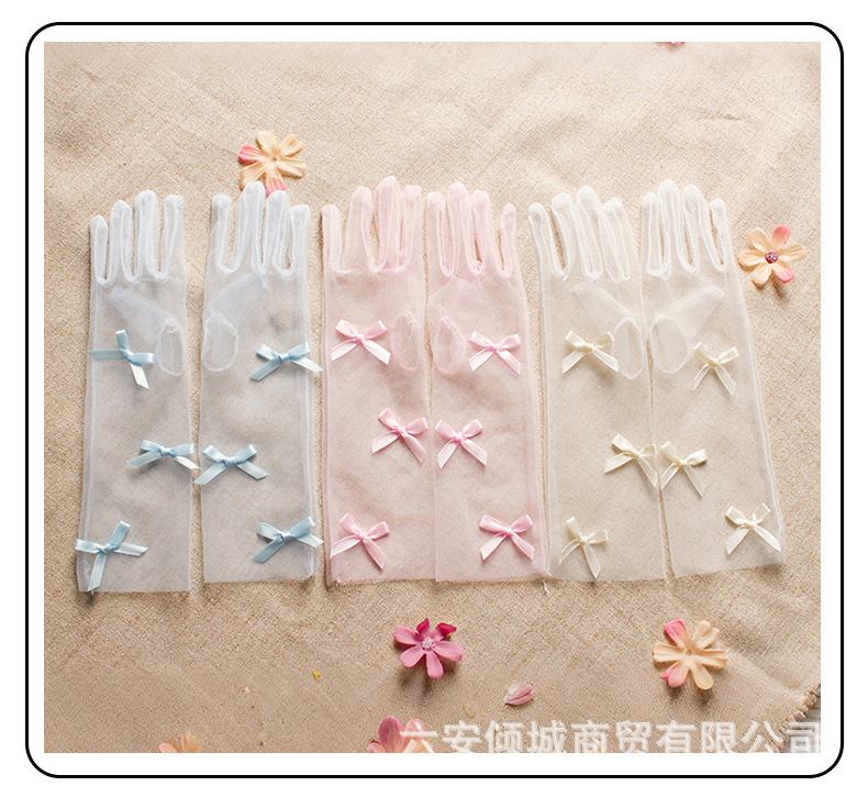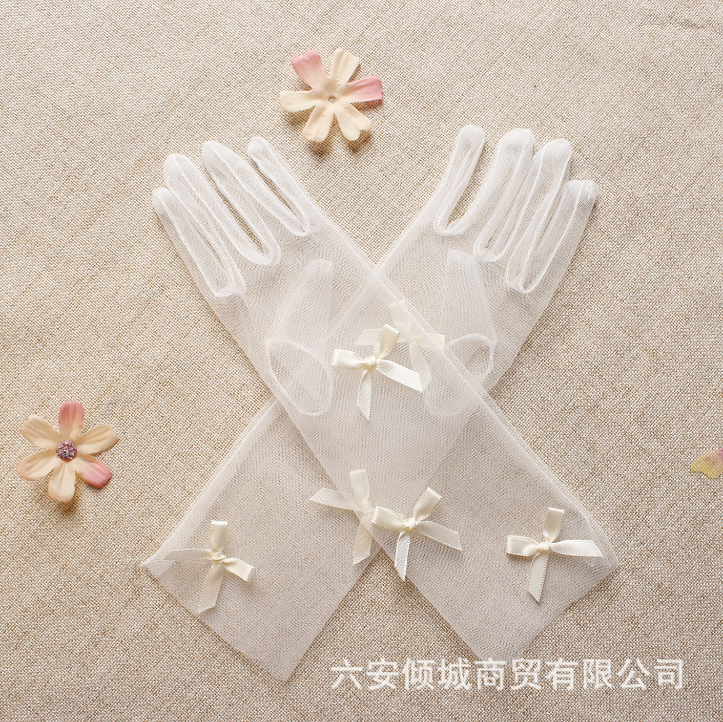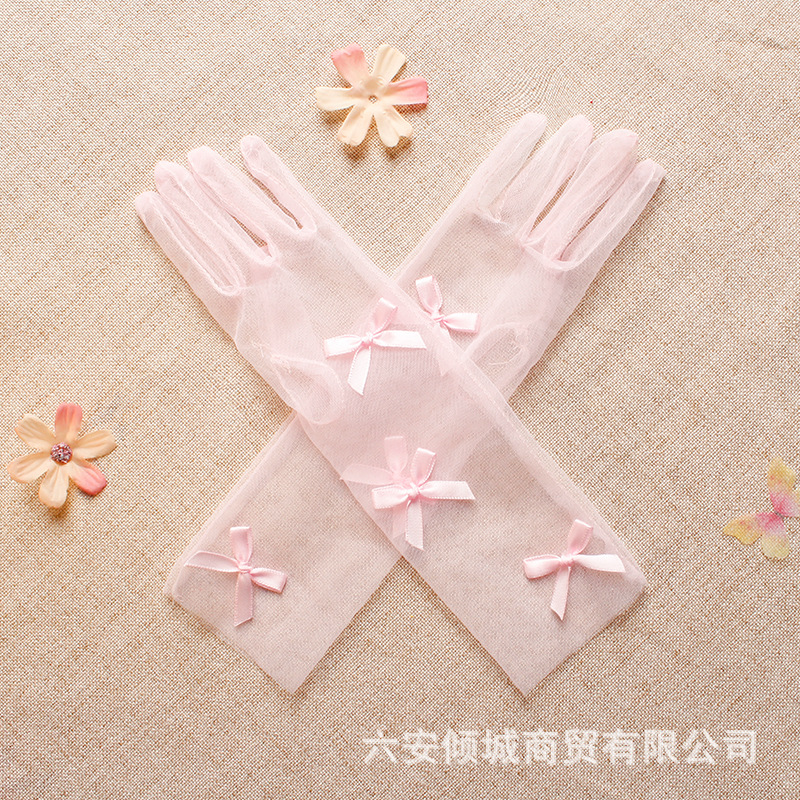 어린이의 새로운 웨딩 장갑 핑크 나비 모양의 중간 길이의 짧은 거즈 장갑 사진 사진 액세서리스토어 가기