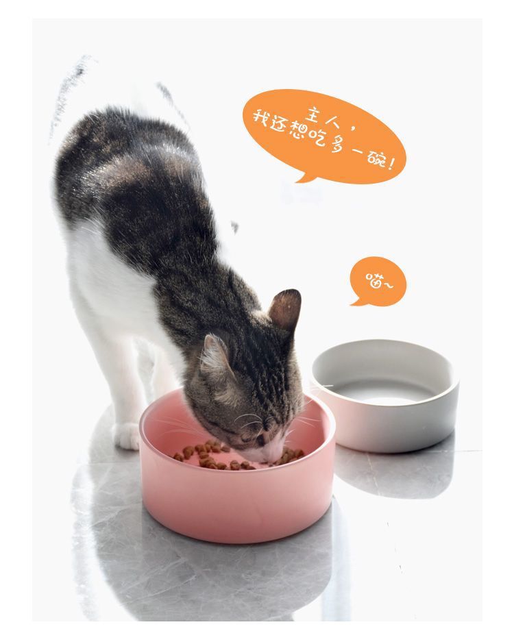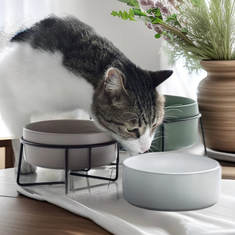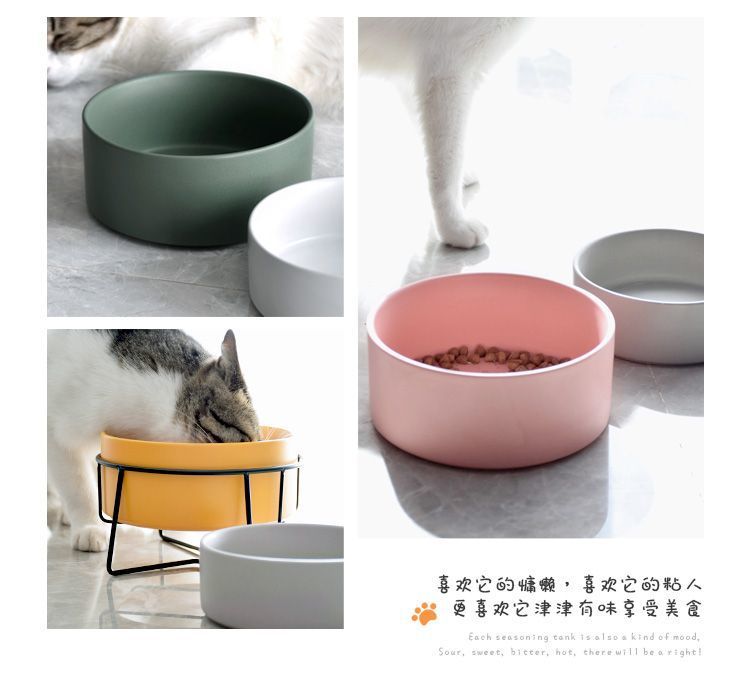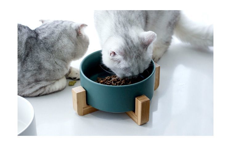 넘어짐 방지 세라믹 더블 그릇, 목 보호 고양이 사료 그릇, 개 그릇, 탈부착 및 세척 가능, 미끄럼 방지 애완동물 먹이 그릇, 경사진 입과 높은 발