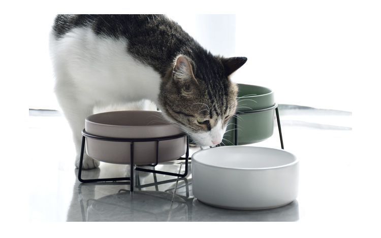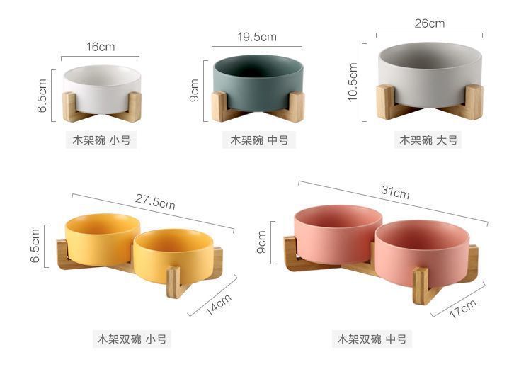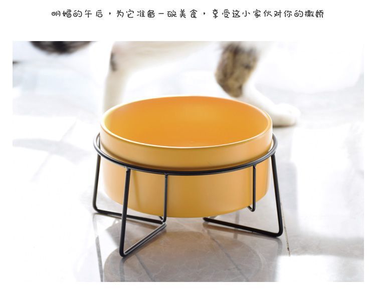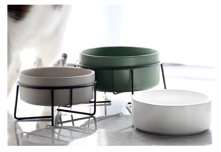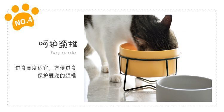 넘어짐 방지 세라믹 더블 그릇, 목 보호 고양이 사료 그릇, 개 그릇, 탈부착 및 세척 가능, 미끄럼 방지 애완동물 먹이 그릇, 경사진 입과 높은 발스토어 가기