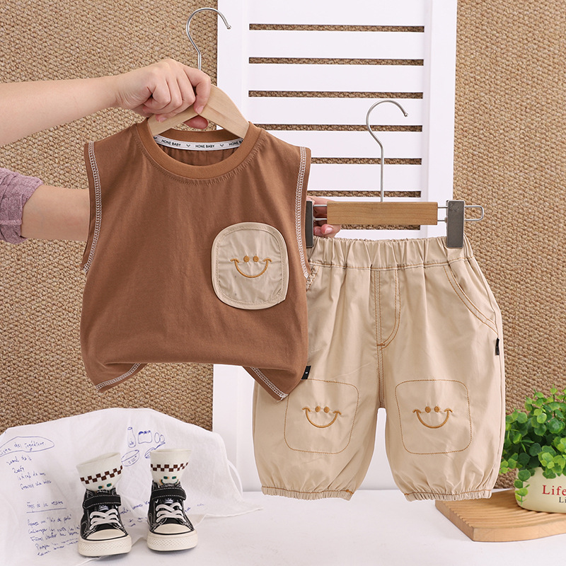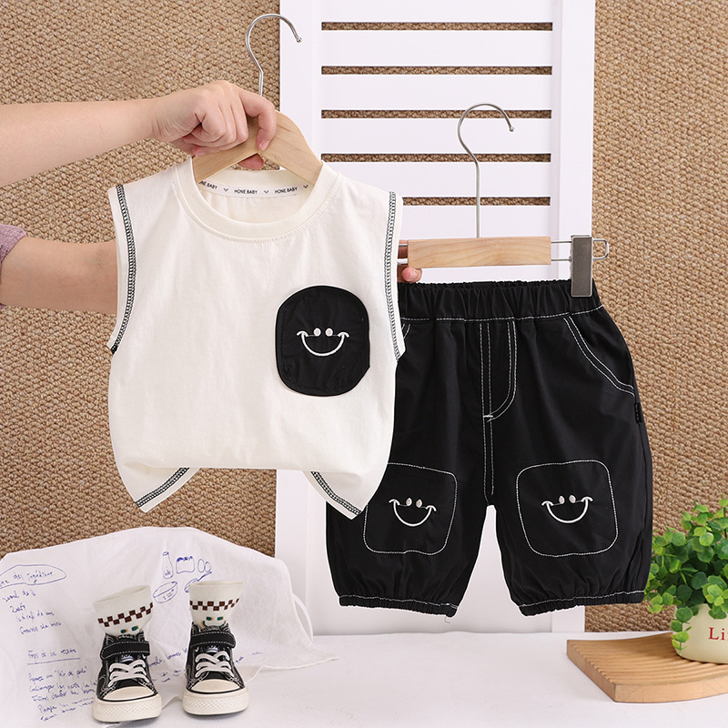 아동복 소년 여름복 민소매 세트 2025 새로운 도착 소년 여름 얇은 서양식 어린이 조끼 투피스 세트