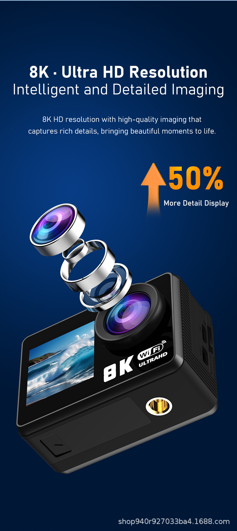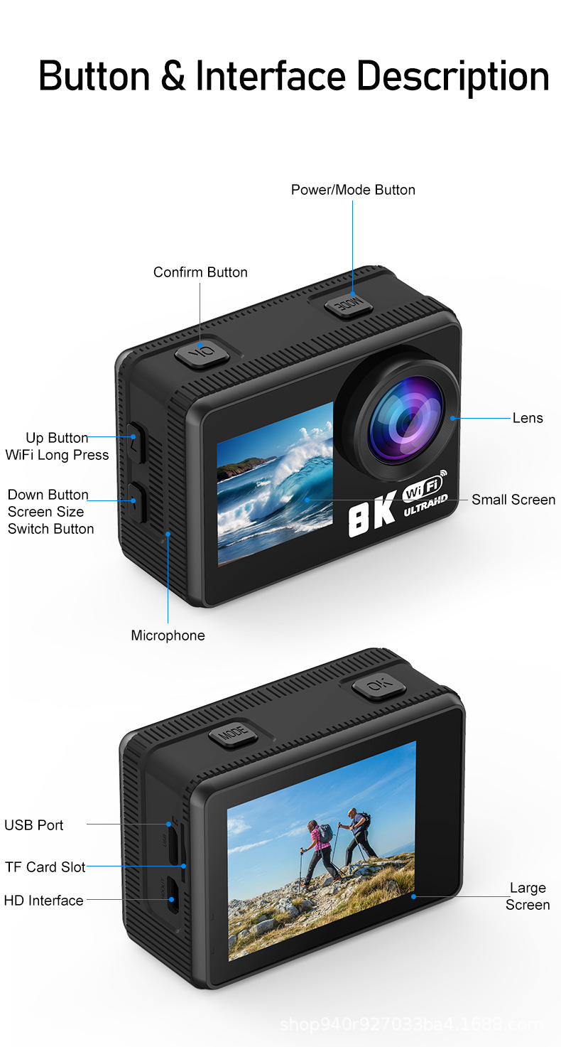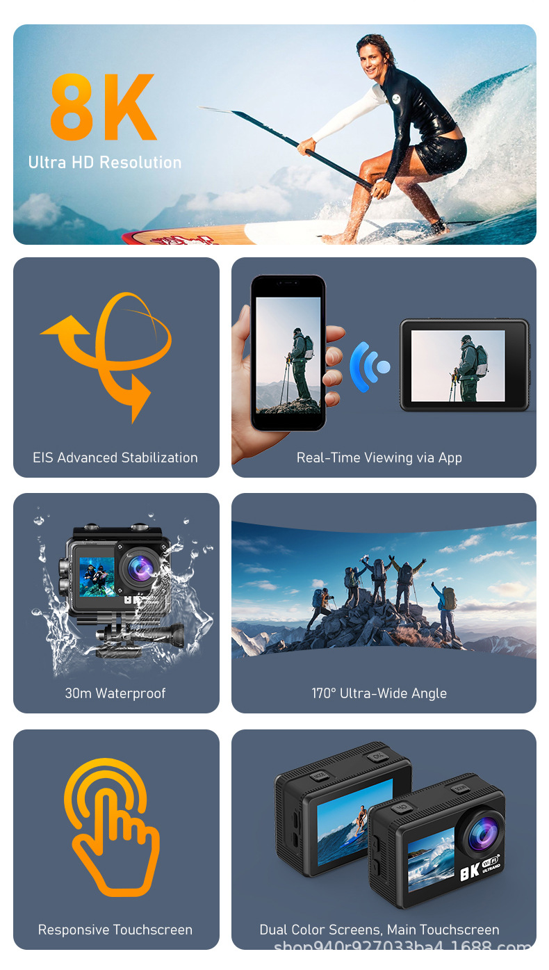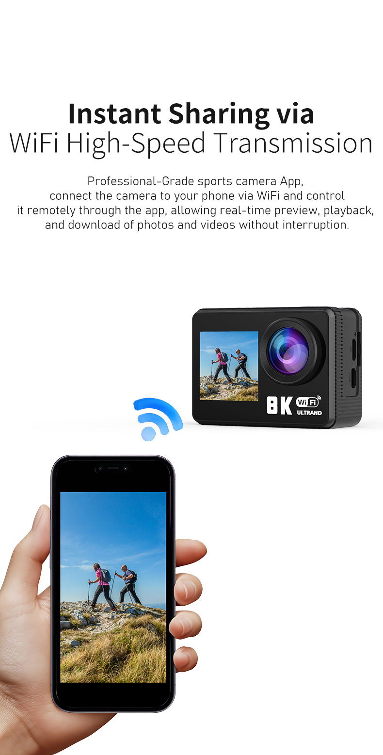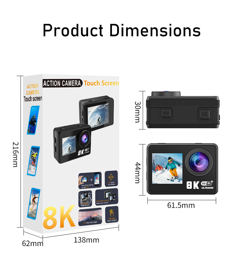 8K 스포츠 카메라 와이파이 카메라 다이빙 야외 승마 HD 디지털 방수 미니 카메라 엄지 포켓