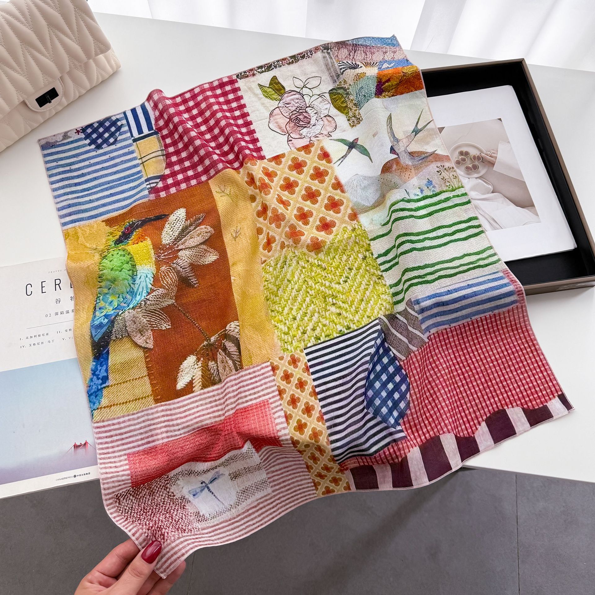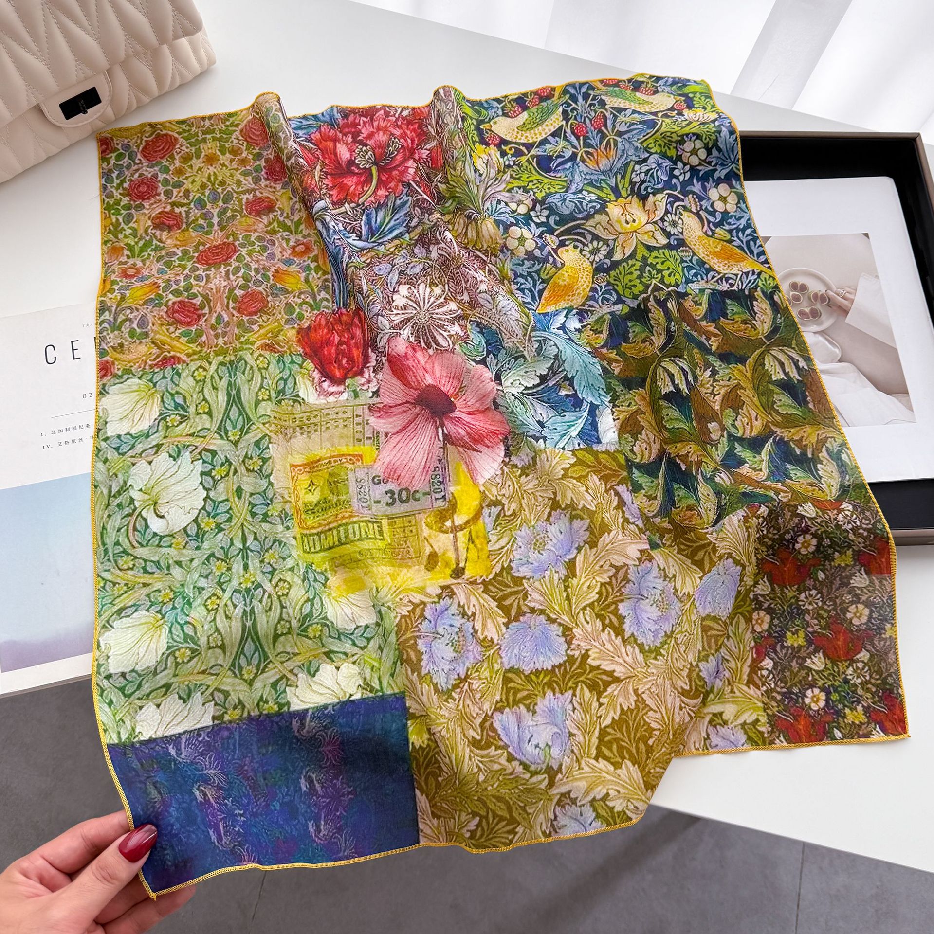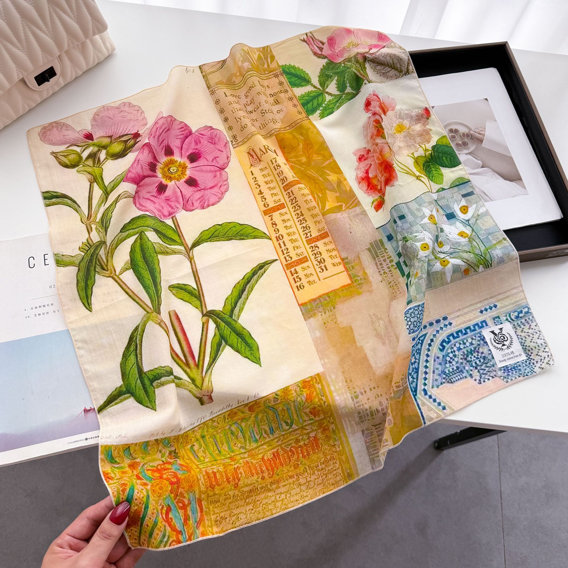 새로운 예술적 레트로 퓨어 코튼 스몰 스퀘어 스카프 여성의 봄과 가을 올 매치 프랑스 스카프 실크 스카프 코튼 컬 장식 헤드 스카프