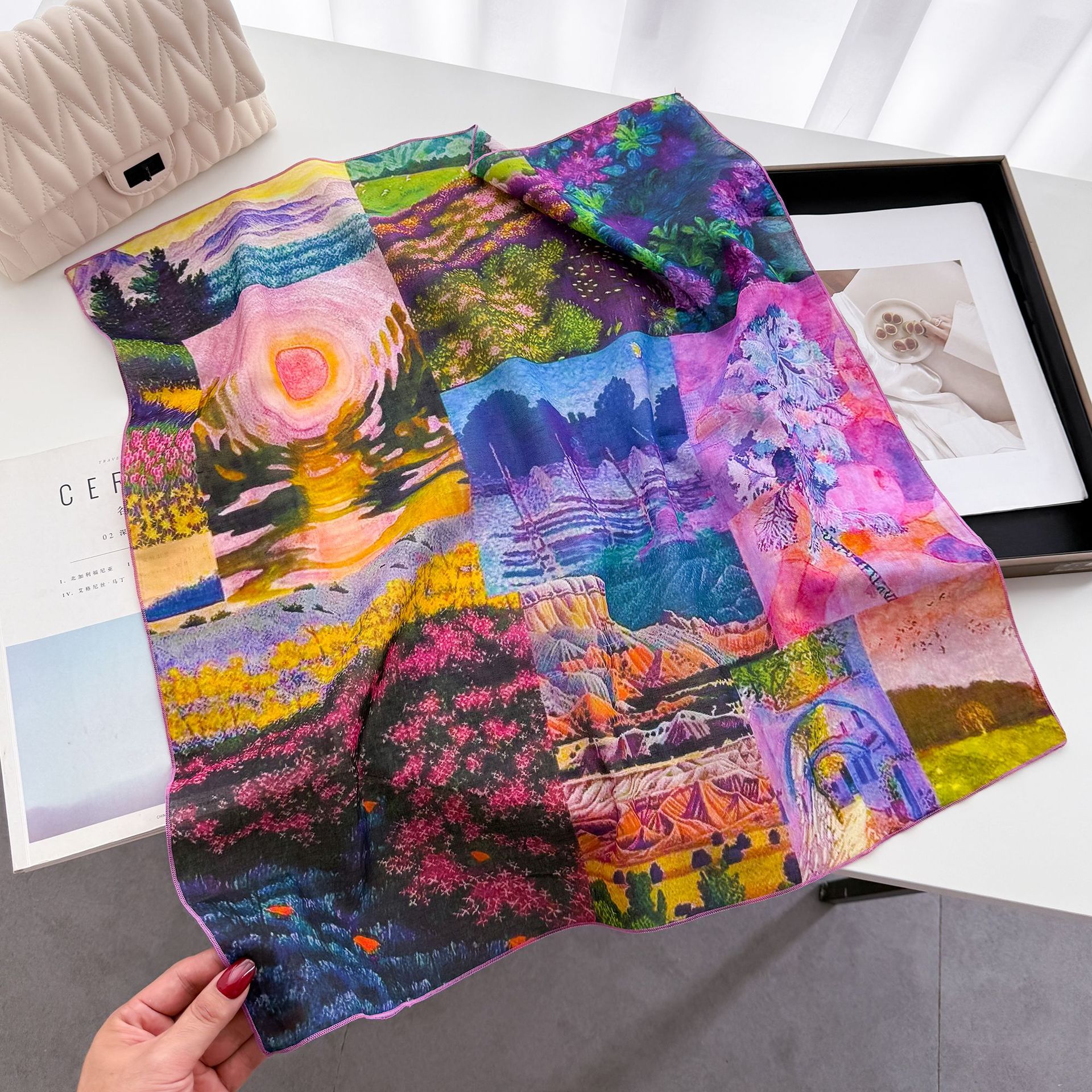 • YF06069 순면 프린트 스퀘어 스카프 7#