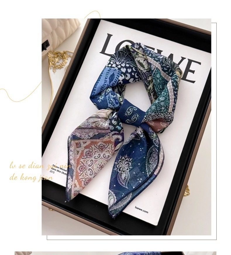 새로운 예술적 레트로 퓨어 코튼 스몰 스퀘어 스카프 여성의 봄과 가을 올 매치 프랑스 스카프 실크 스카프 코튼 컬 장식 헤드 스카프스토어 가기