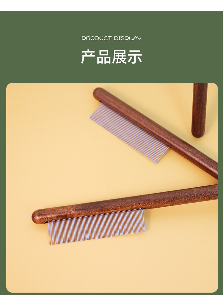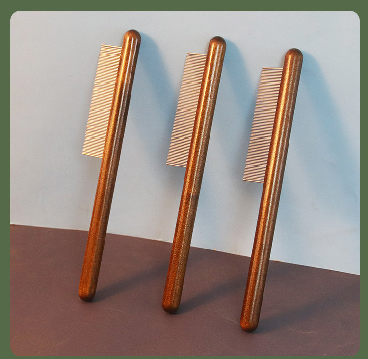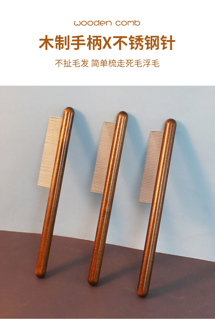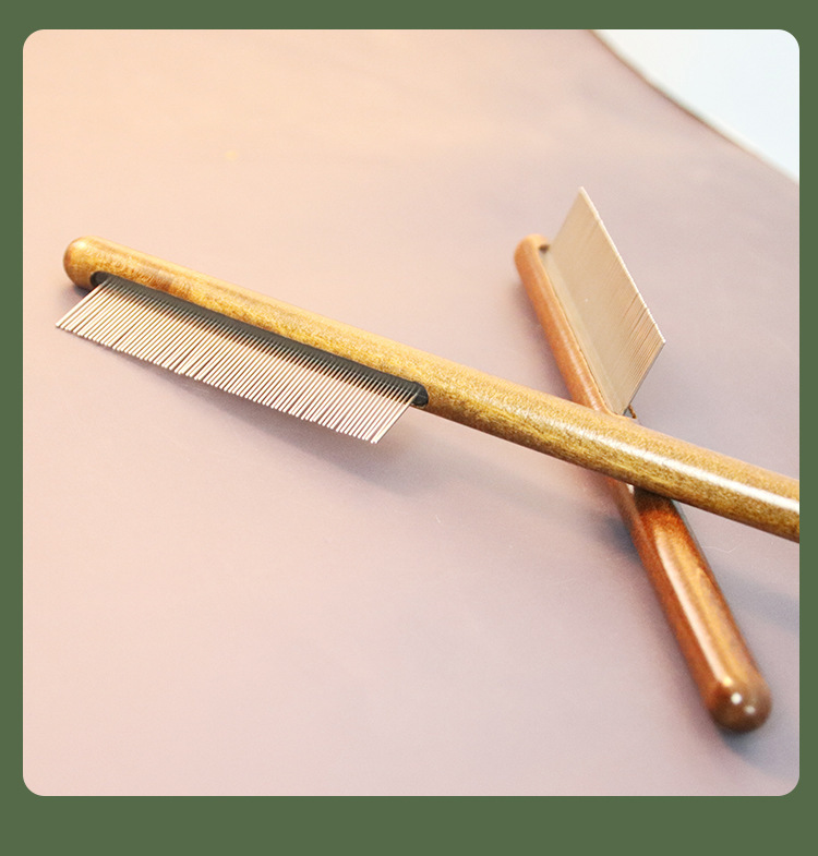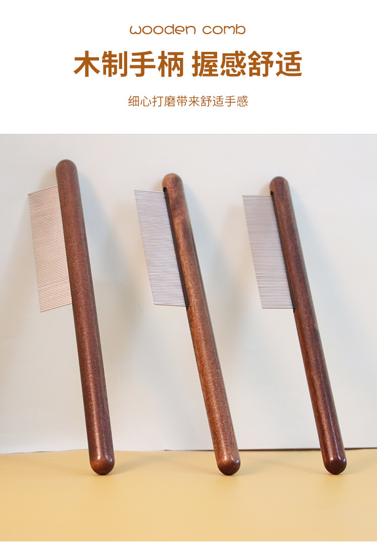 나무 손잡이가 있는 개 빗, 고밀도 치아 빗, 애완동물 빗, 긴 털 고양이 청소 빗, 떠다니는 털 제거, 벼룩 제거 고양이 빗
